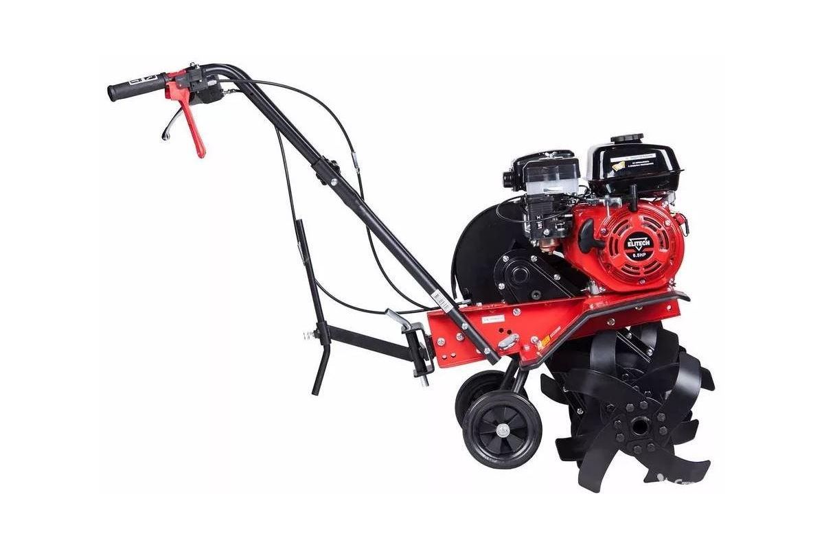 ELITECH КБ 60 P – бензиновый культиватор для прополки от сорняков, взрыхления, а также закапывания удобрений и семян. Мощность двигателя — 6,5 л.с. Ширина обработки – 85 см, глубина — 33 см.