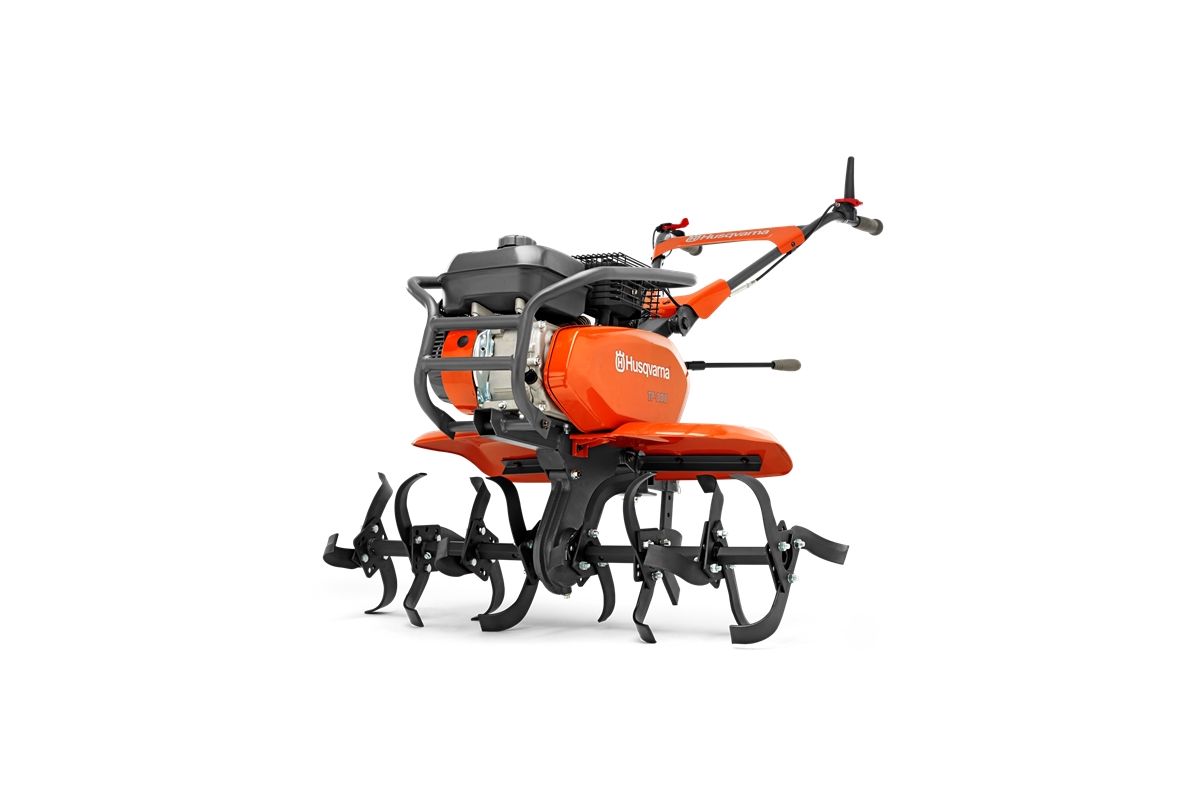 HUSQVARNA TF 338 –мотокультиватор для обработки территорий до 10 соток. Мощность двигателя HUSQVARNA – 4,9 л.с. Относится к классу тяжёлых агрегатов, весит 93 кг. За проход обработает полосу земли шириной 950 мм на глубину до 300 мм. Пригодится для вспашки земли, удаления сорняков, посадки и сбора картошки и т.д.