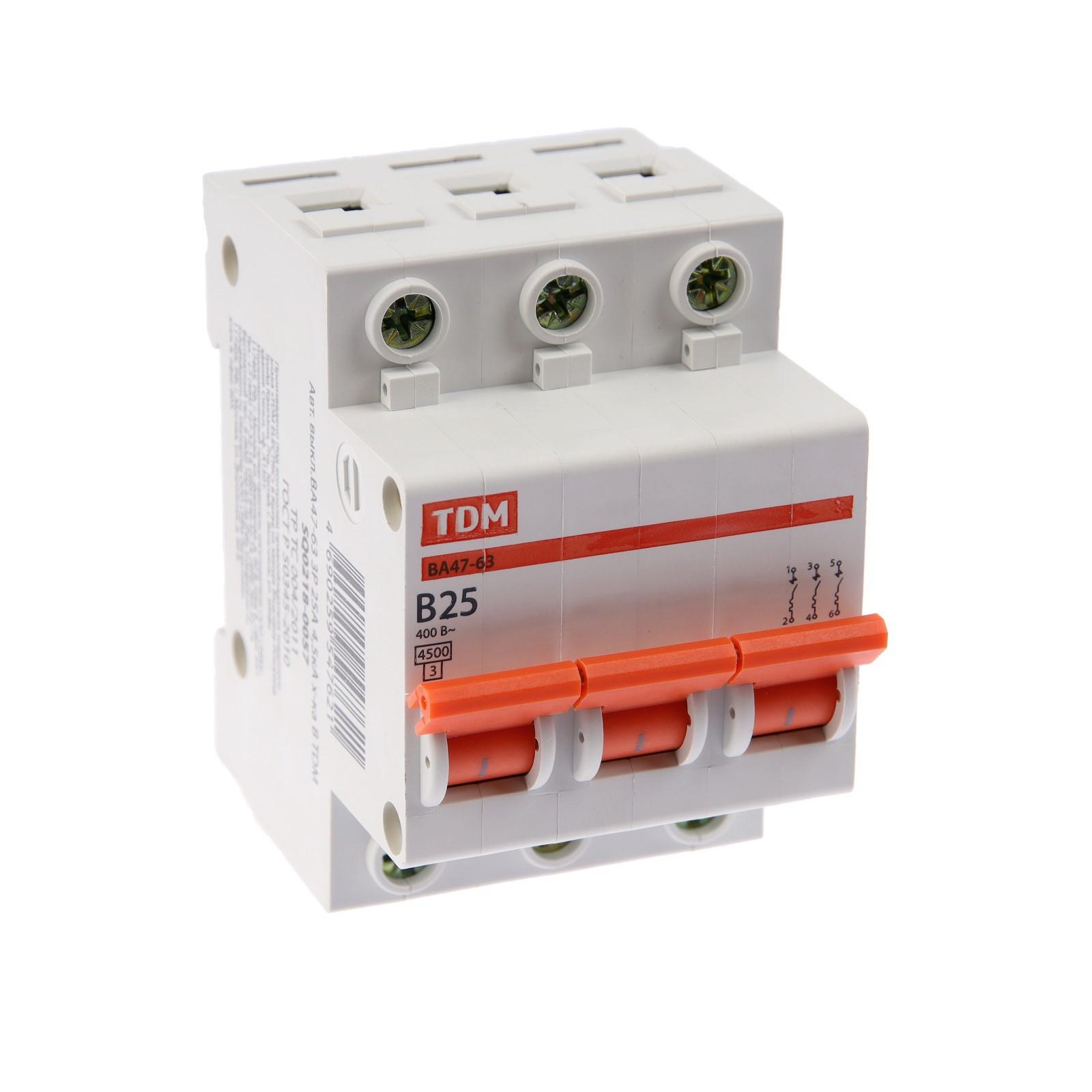 Выключатель автоматический TDM ВА47-63, 3п, 25 А, 4.5 кА, В, SQ0218-0057