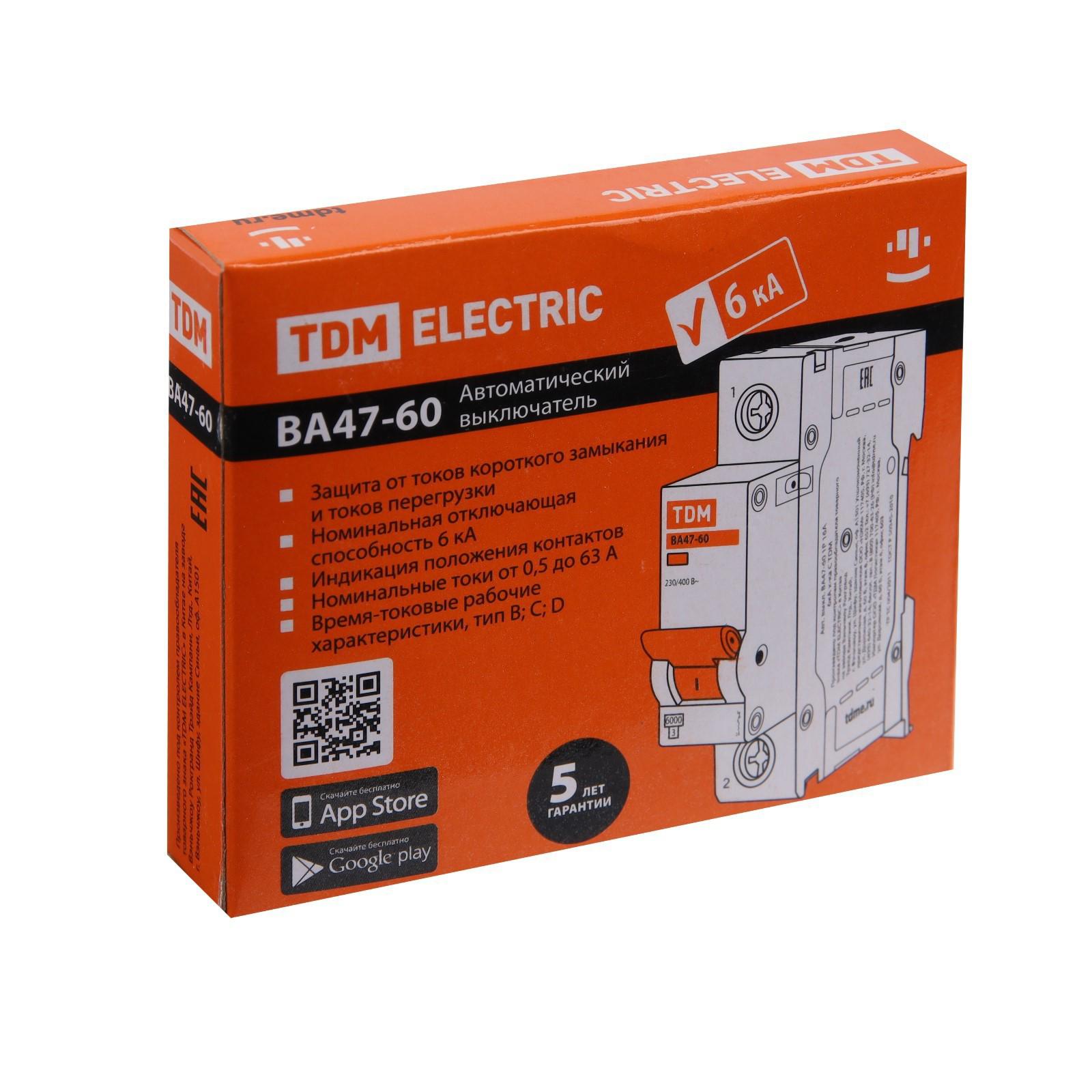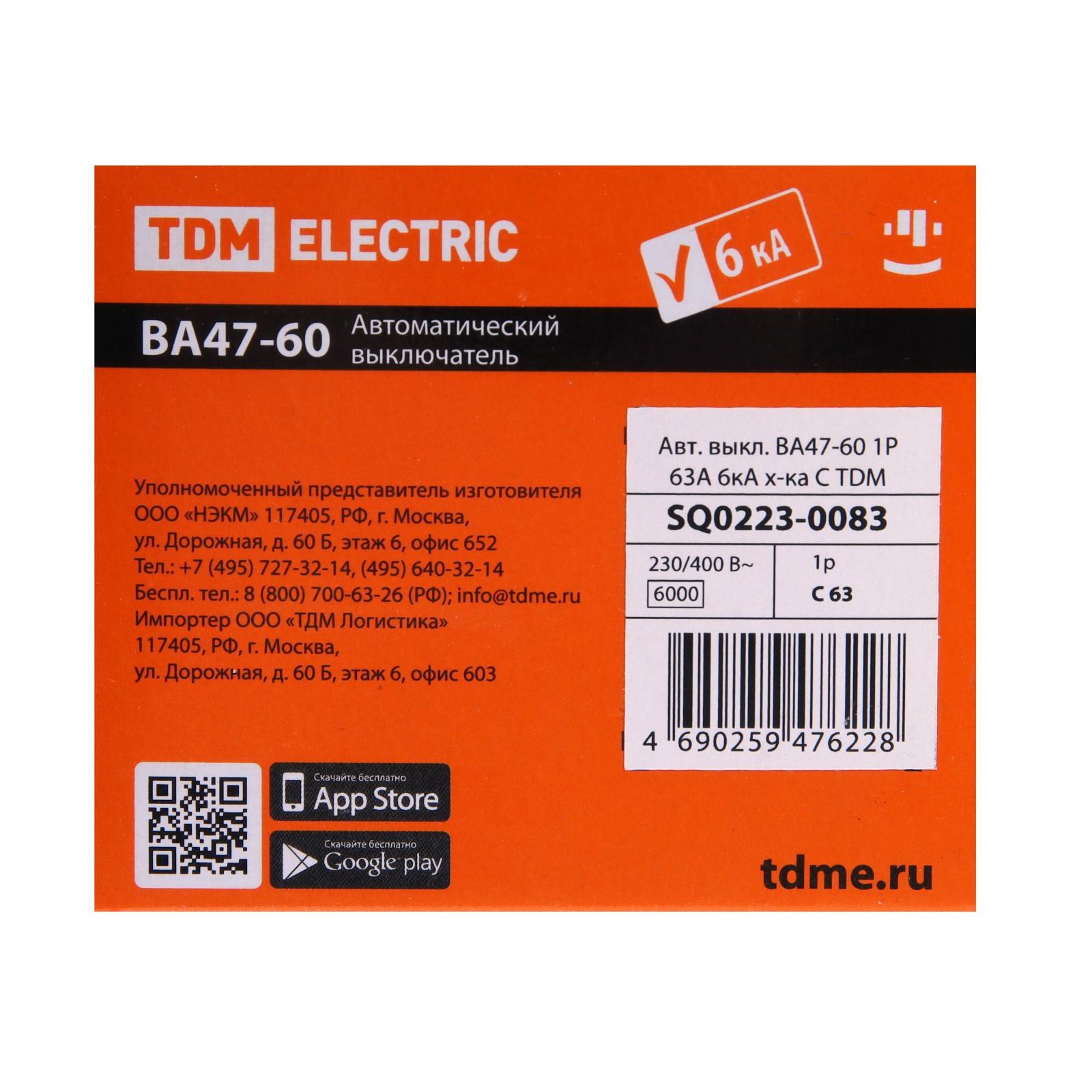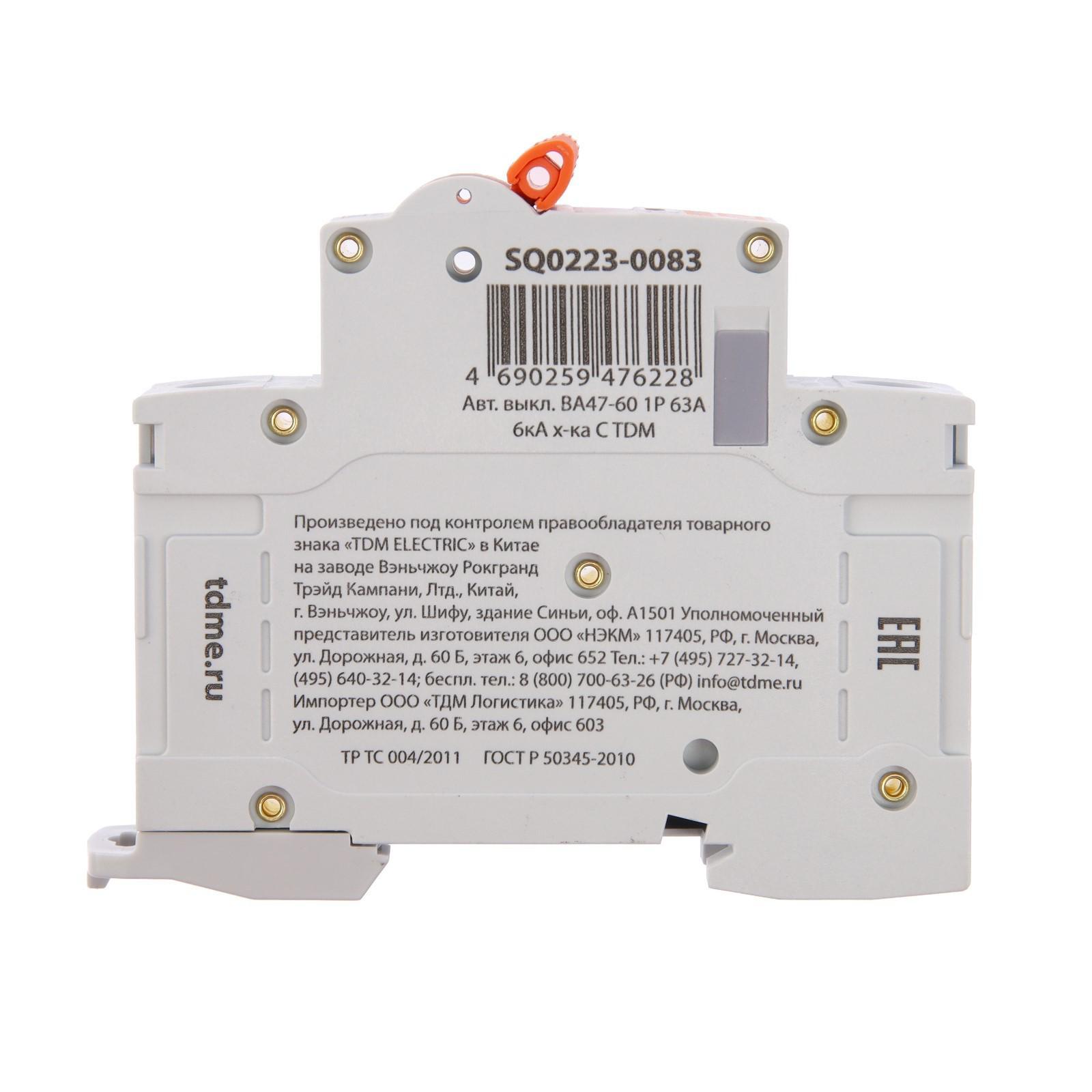 Выключатель автоматический TDM ВА47-60, 1п, 63 А, 6 кА, C, SQ0223-0083