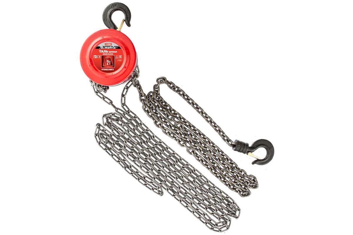 Таль механическая MATRIX 519365 цепная 2т h подъема 2.5м расстояниемежду крюками 380мм