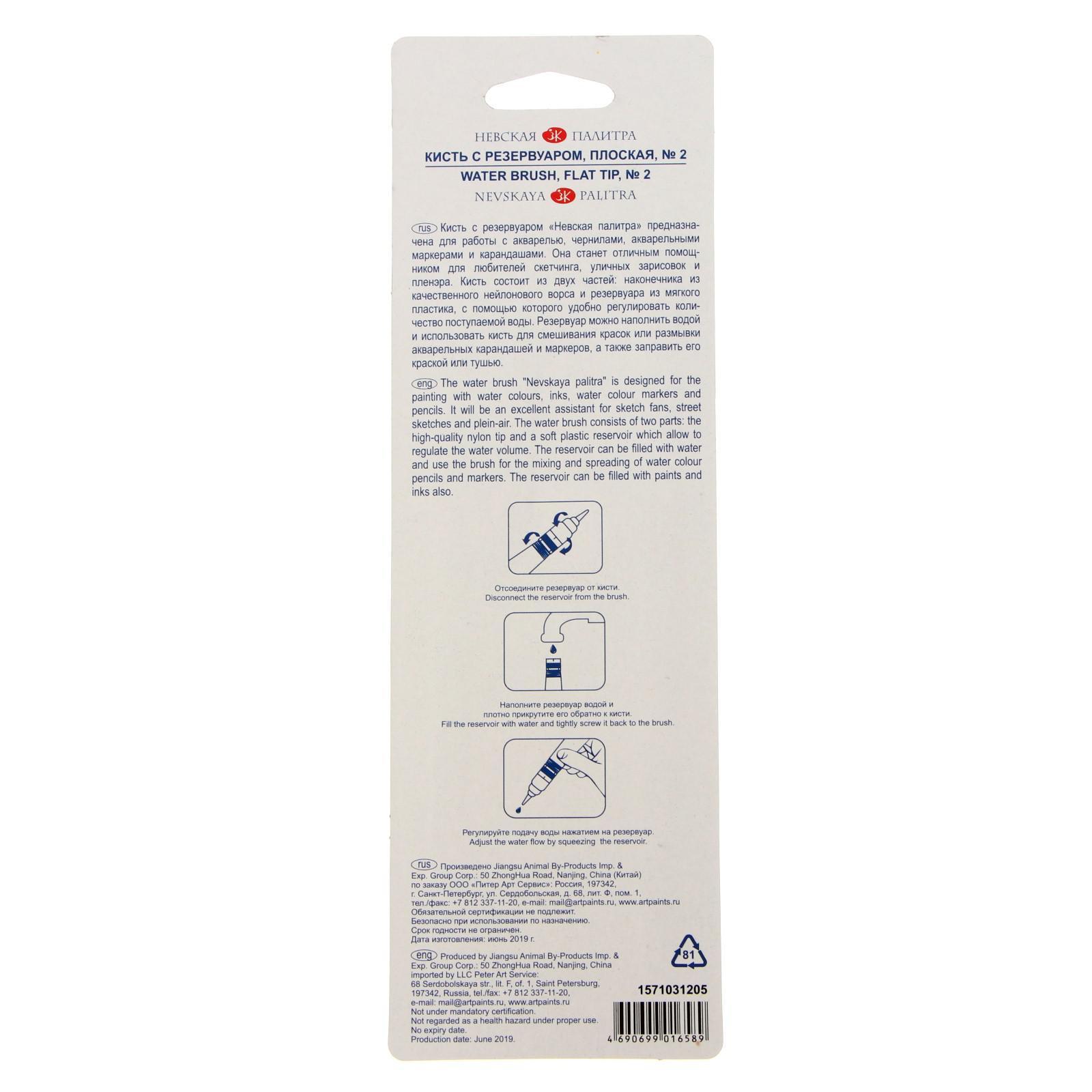 Кисть синтетика с резервуаром для краски (воды), плоская, 7.5 мм, ЗХК «Невская палитра», №2
