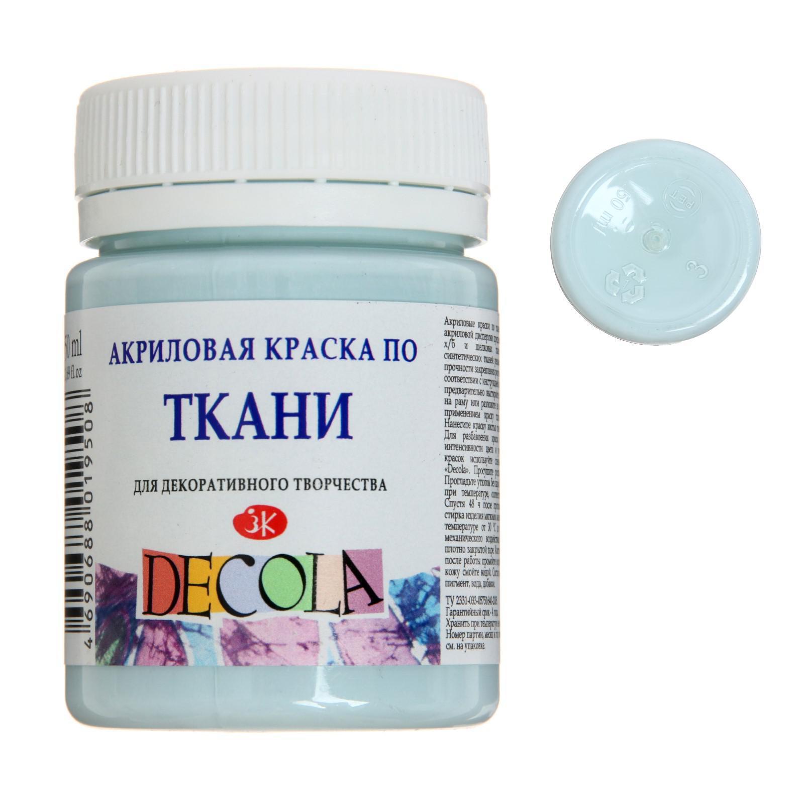 Краска по ткани, банка 50 мл, Decola, акриловая на водной основе, светло-голубая, 4128534