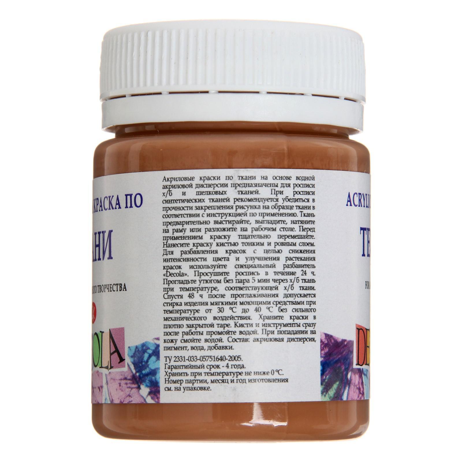 Краска по ткани, банка 50 мл, Decola, акриловая на водной основе, кофейная, 4128434