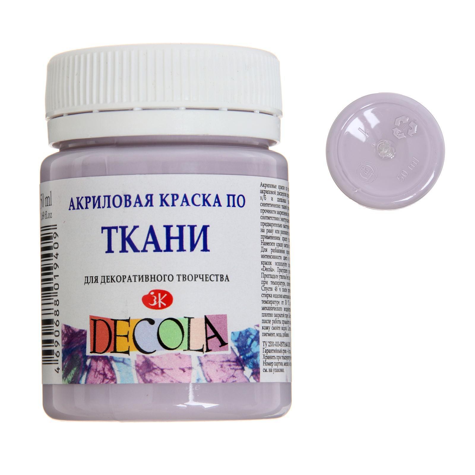 Краска по ткани, банка 50 мл, Decola, акриловая на водной основе, лиловая, 4128626