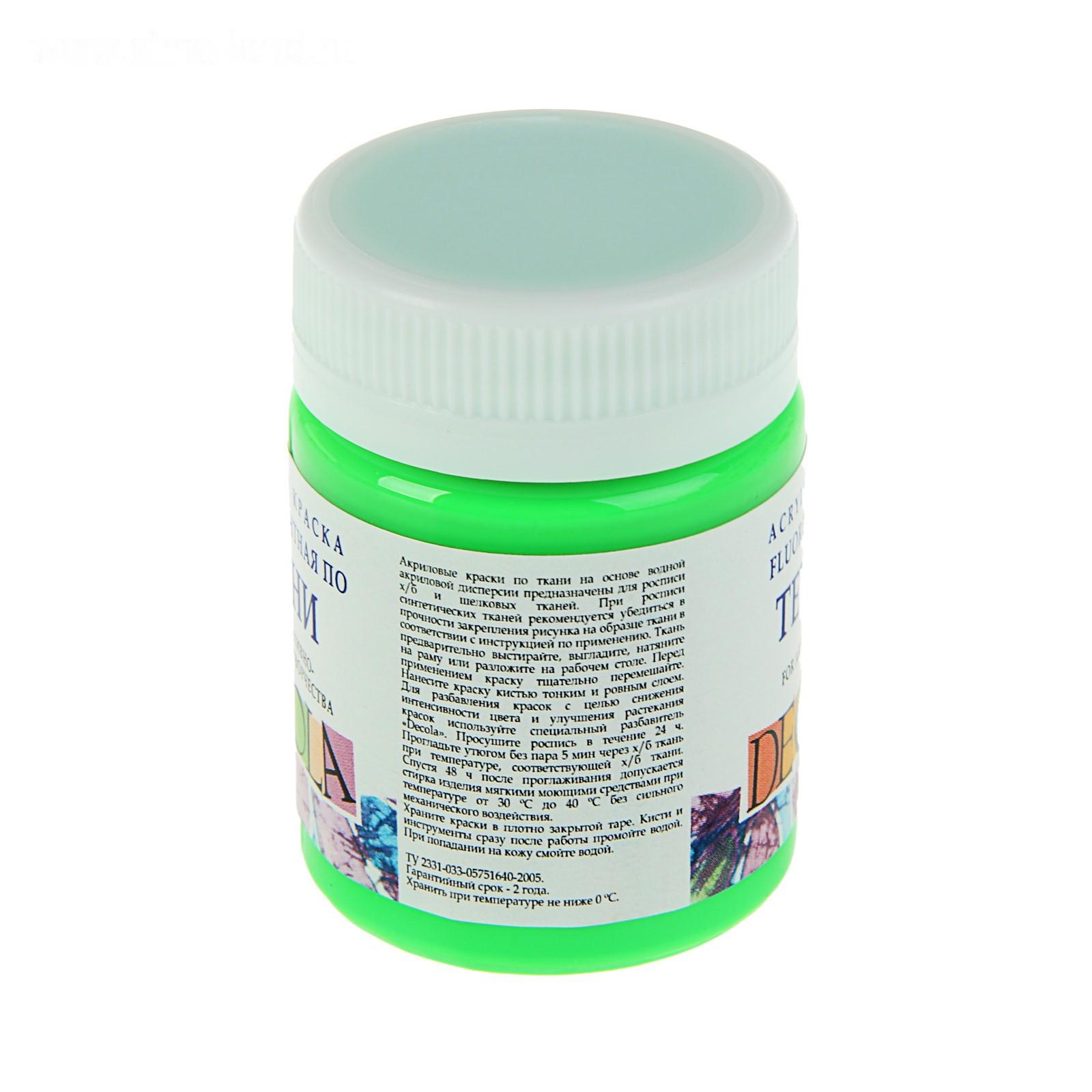 Краска по ткани, банка 50 мл, Decola, акриловая на водной основе, Fluo флуоресцентная Зелёная