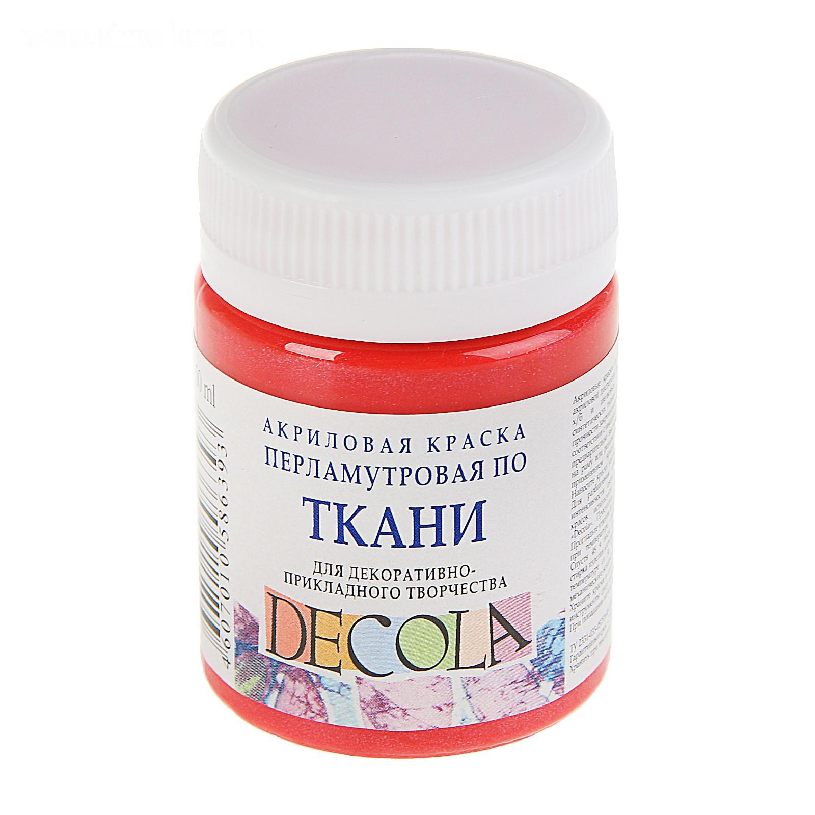 Краска по ткани, банка 50 мл, Decola, Pearl перламутровая Красная, акриловая на водной основе, 5228331