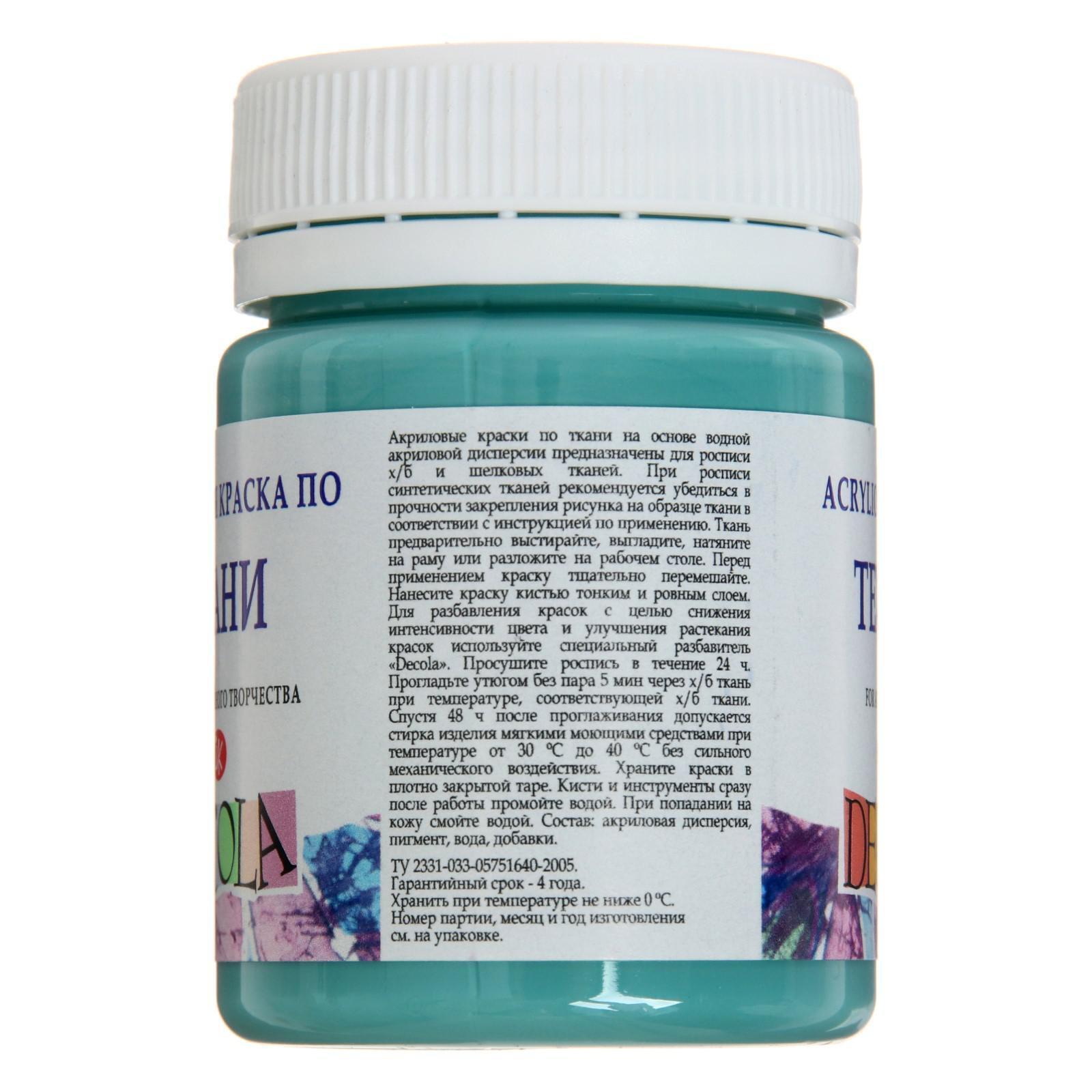 Краска по ткани, банка 50 мл, Decola, акриловая на водной основе, турецкая зелёная, 4128733