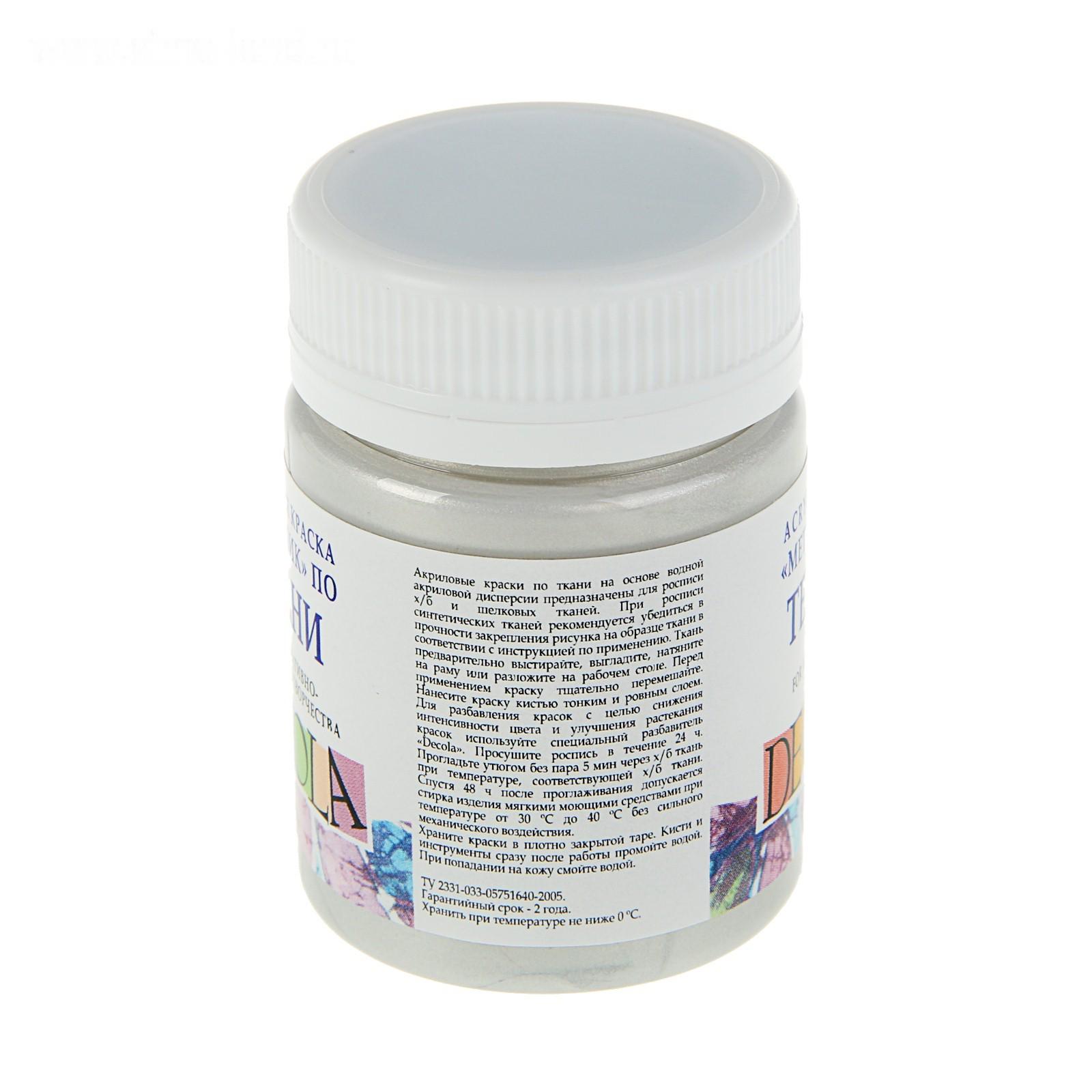 Краска по ткани, банка 50 мл, Decola, акриловая на водной основе, Серебро, 4128966