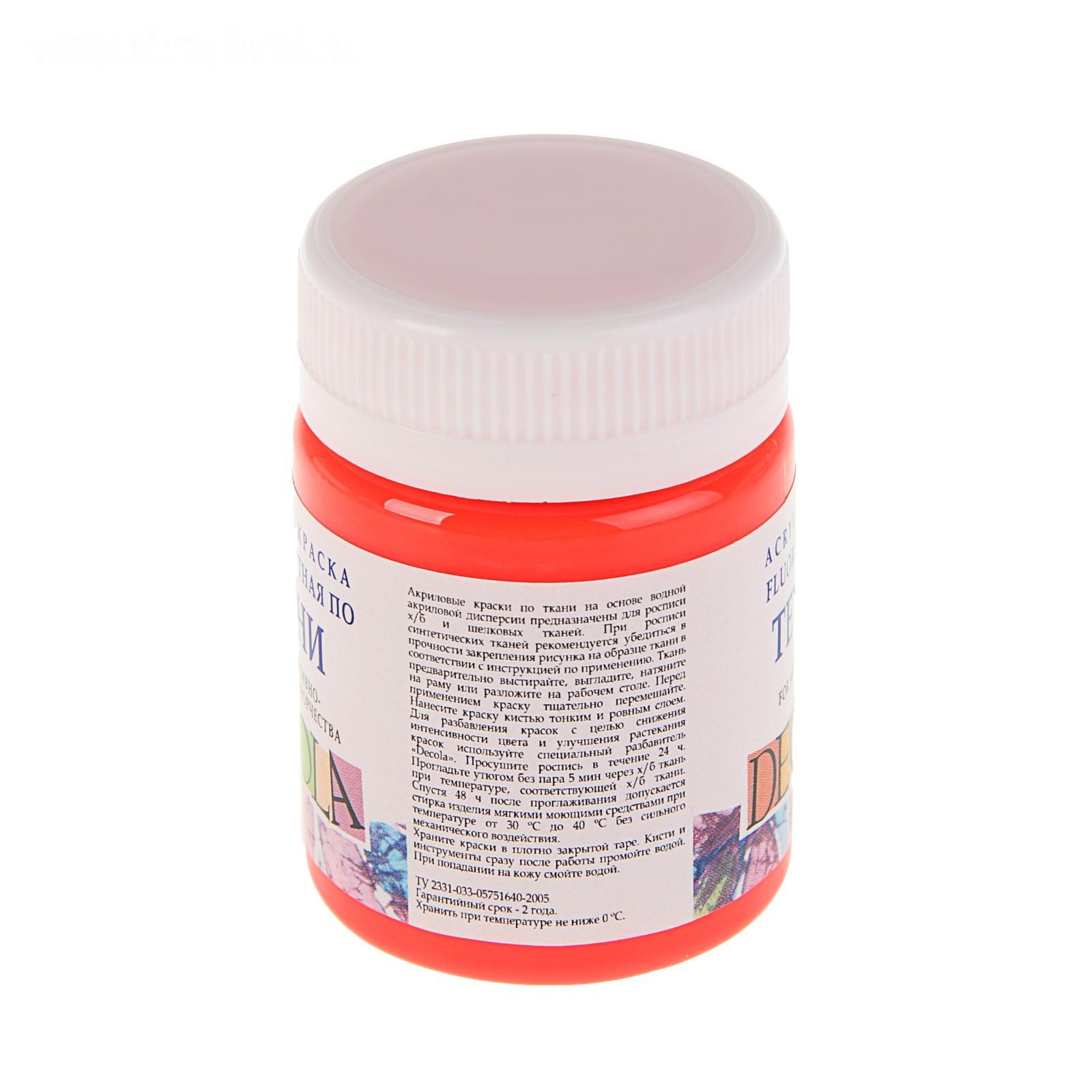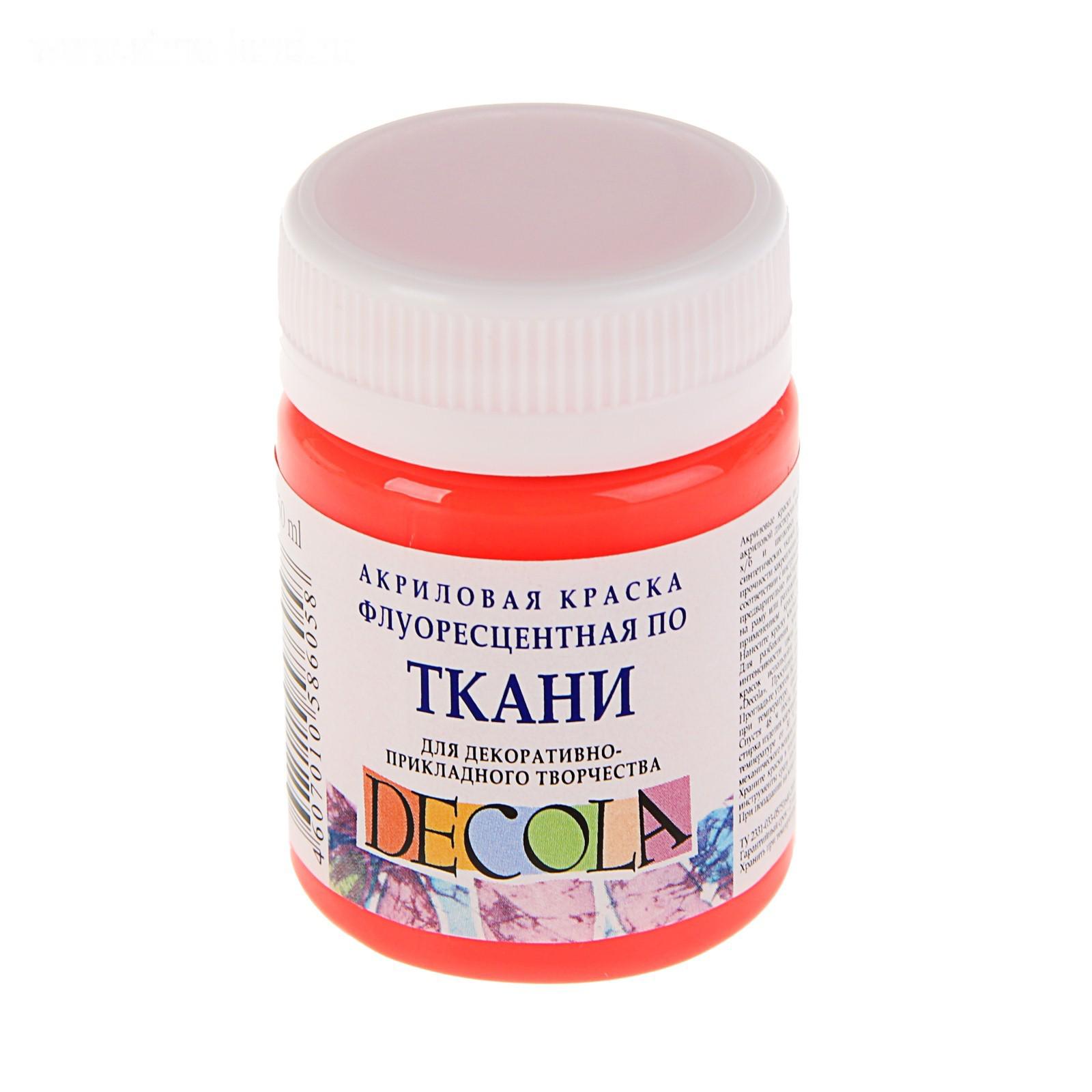 Краска по ткани, банка 50 мл, Decola, акриловая на водной основе, Fluo флуоресцентная Красная