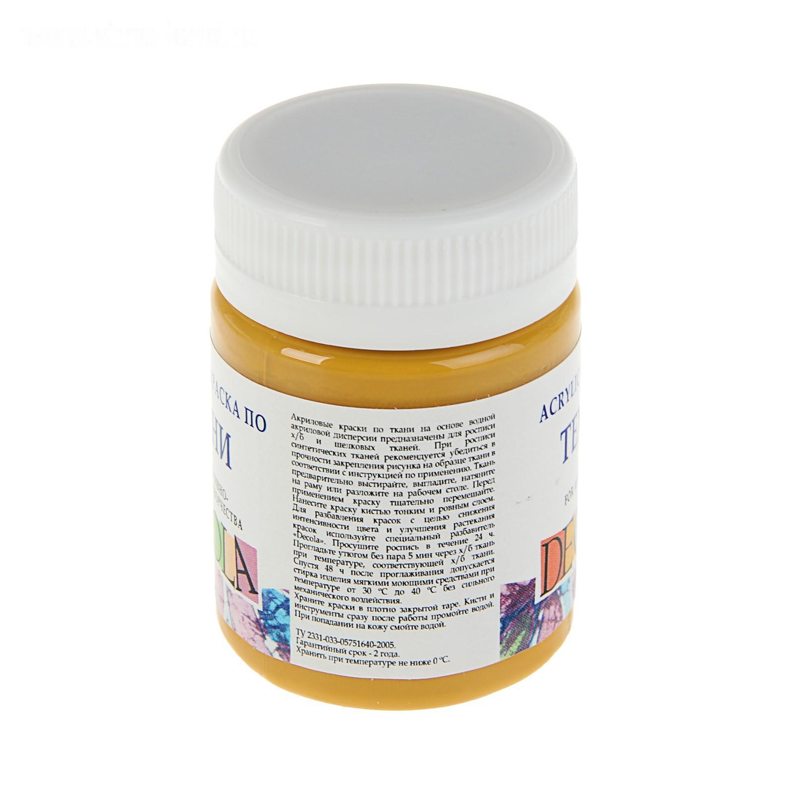 Краска по ткани, банка 50 мл, Decola, акриловая на водной основе, Охра светлая 4128206