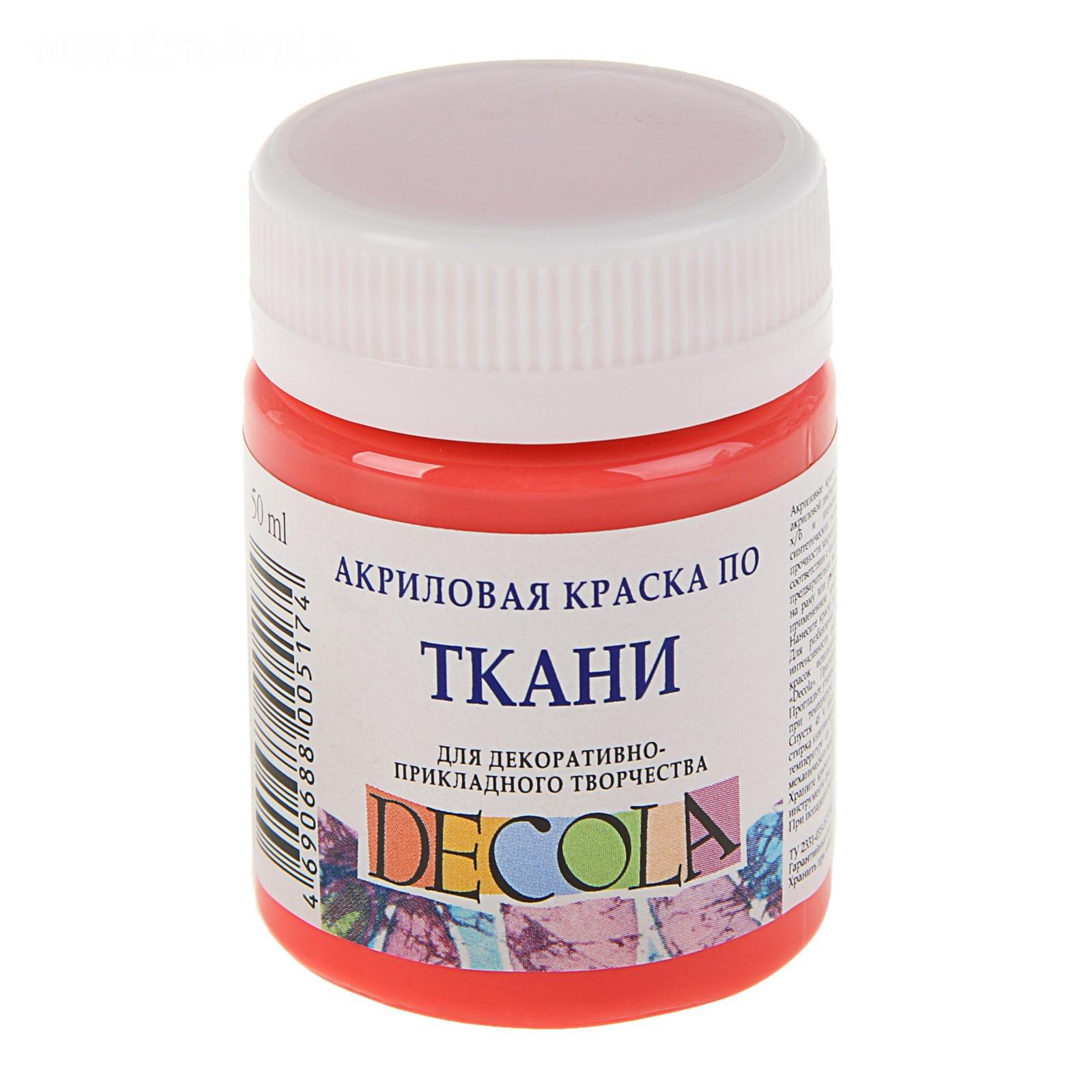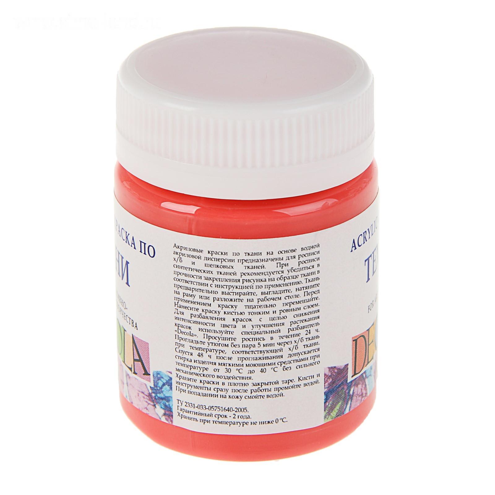 Краска по ткани, банка 50 мл, Decola, акриловая на водной основе, Коралловая 4128355