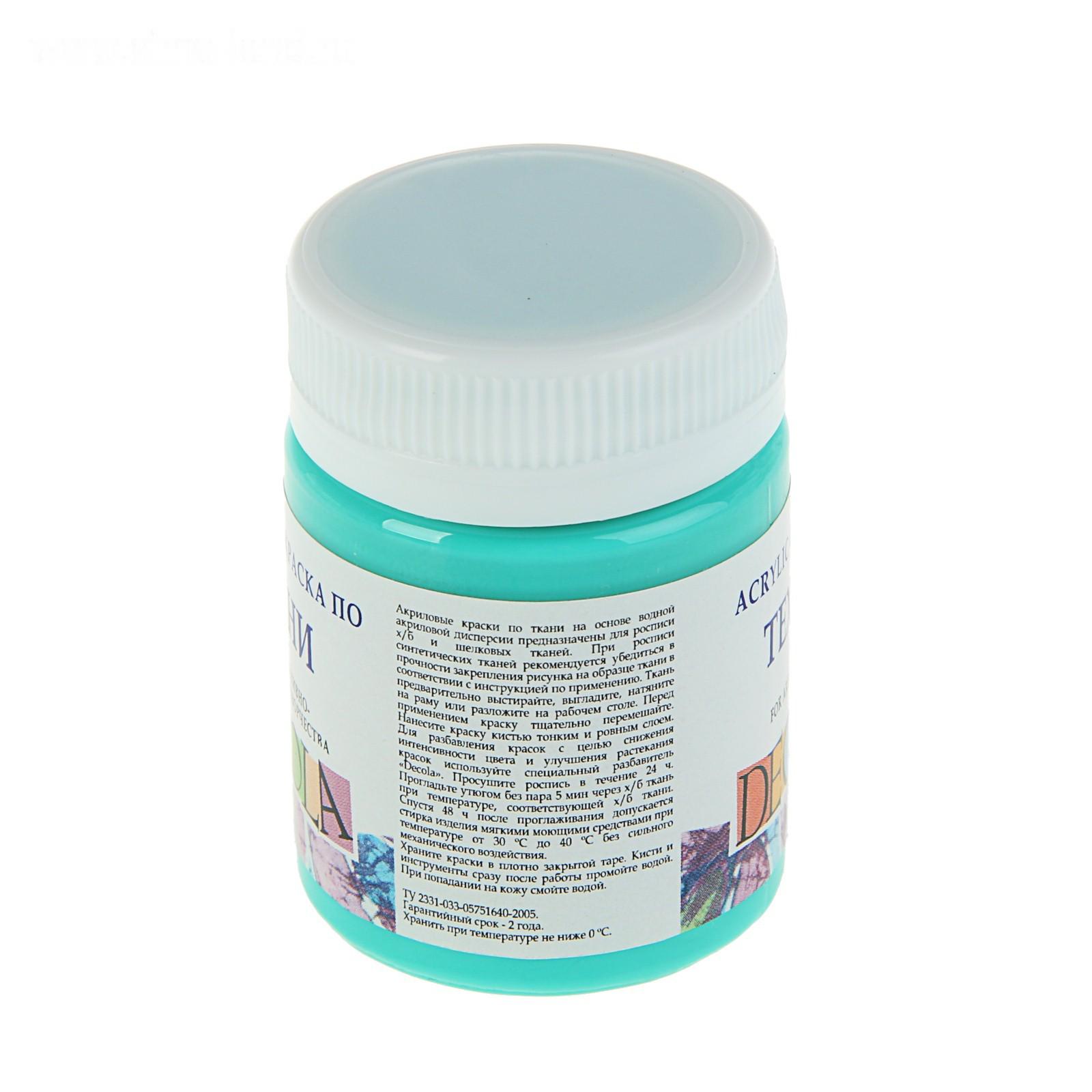 Краска по ткани, банка 50 мл, Decola, акриловая на водной основе, Мятная 4128735