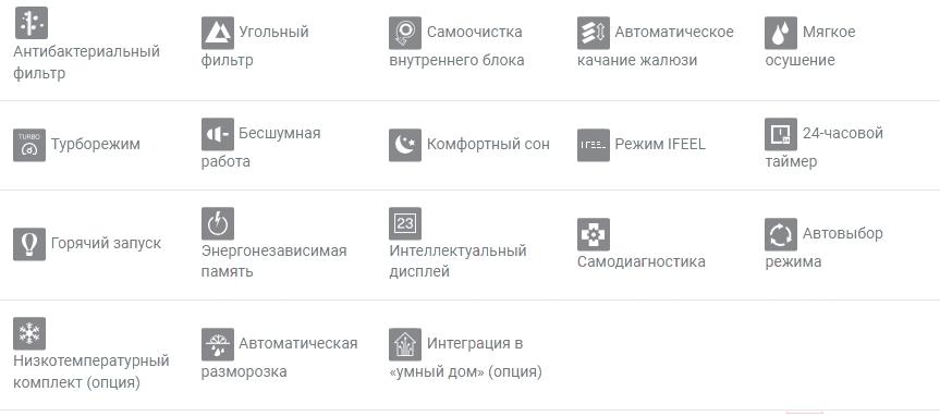• Режим работы охлаждение, обогрев, осушение, сон (тишина), турбо-режим