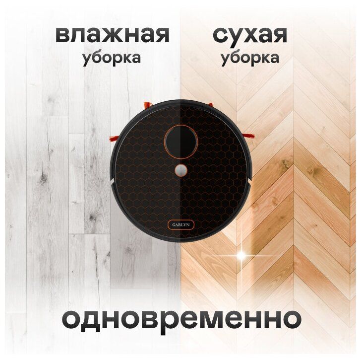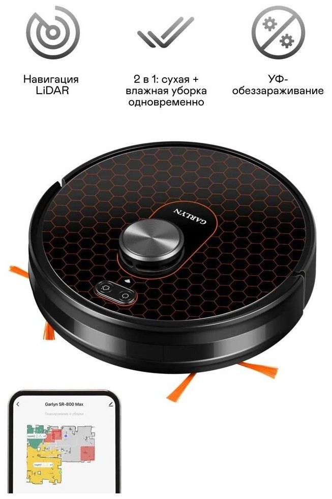 Робот-пылесос GARLYN SR-700 - мощный и функциональный прибор с функцией сухой и влажной уборки напольных покрытий. Максимально точная навигация с технологией LIDAR и до 150 минут непрерывной работы. Управляйте со смартфона, настраивая уборку по расписанию. Ежедневная чистота дома без лишних усилий. GARLYN SR-700 оснащен несколькими режимами, он справится с автоматической уборкой больших помещений, устранит локальные загрязнения и сделает качественную уборку по периметру. Мощность всасывания с легкостью регулируется. Робот-пылесос оснащен комбинированным контейнером для сухой и влажной уборки объёмом 300/350 мл. Функционал GARLYN SR-700 дополнен функцией УФ стерилизации напольных покрытий, а значит робот-пылесос справится не только с их очисткой, но и обеззараживанием от бактерий и вирусов.