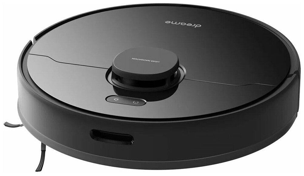 Робот-пылесос Dreame D9 Max — мощный пылесос для сухой и влажной уборки. Прибор выполнен в классическом круглом корпусе из черного глянцевого и матового пластика. Сверху находится лидар с системой анти-застревания под мебелью.