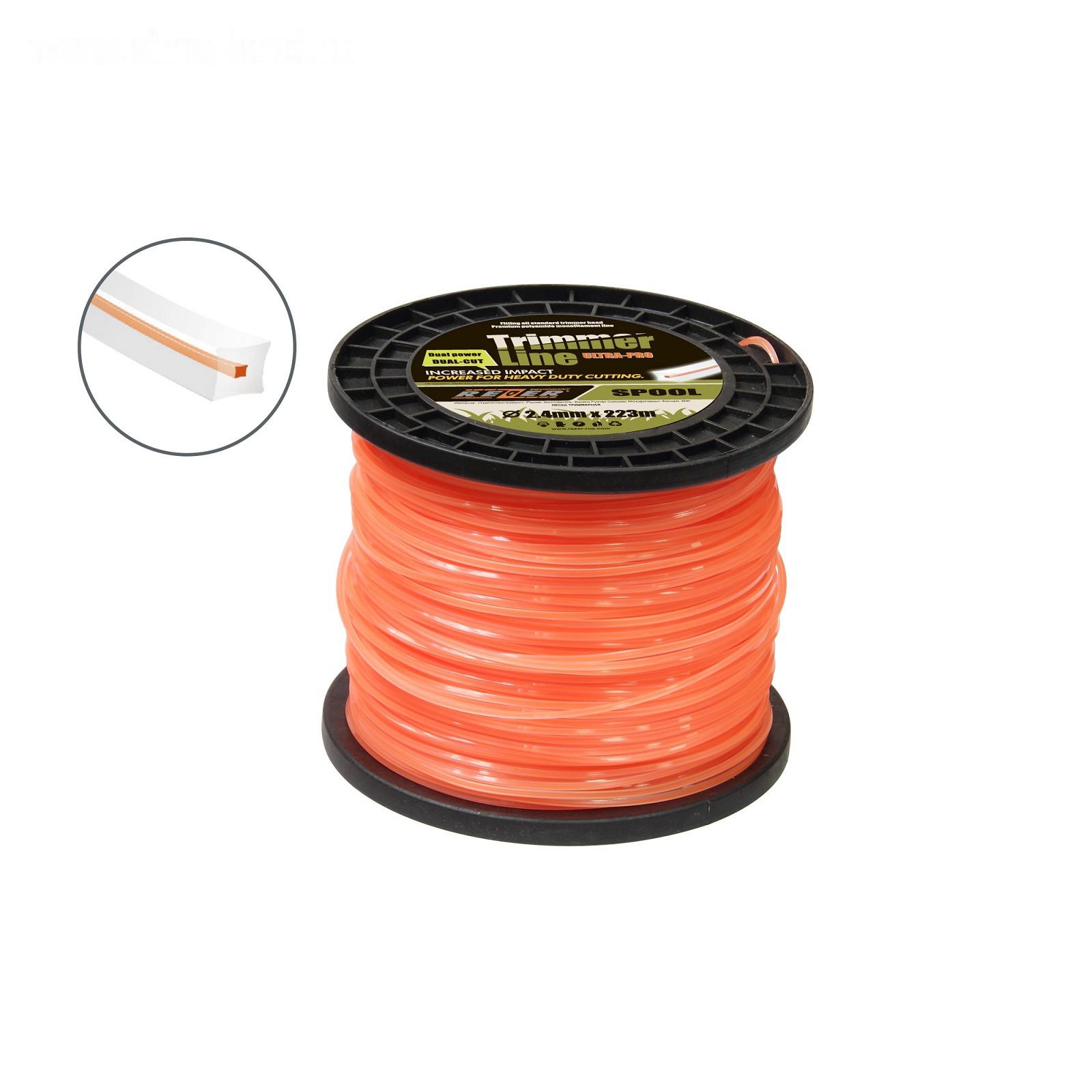 Леска для триммера Rezer 03.007.00013, двухкомпонентная, d=2.4 мм, 223 м, сечение квадрат