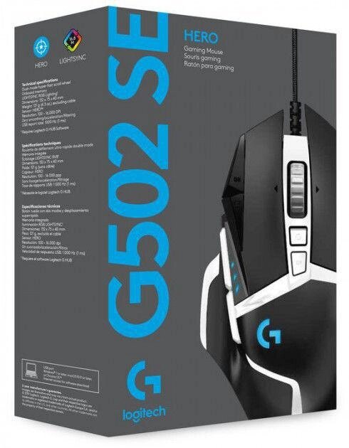 Мышь Logitech G502 SE HERO, игровая, лазерная, проводная, USB, черный и белый [910-005729]