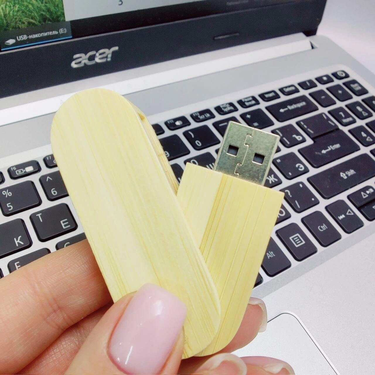 USB накопитель (флешка) Green светлое дерево / раскладной корпус, 16 Гб