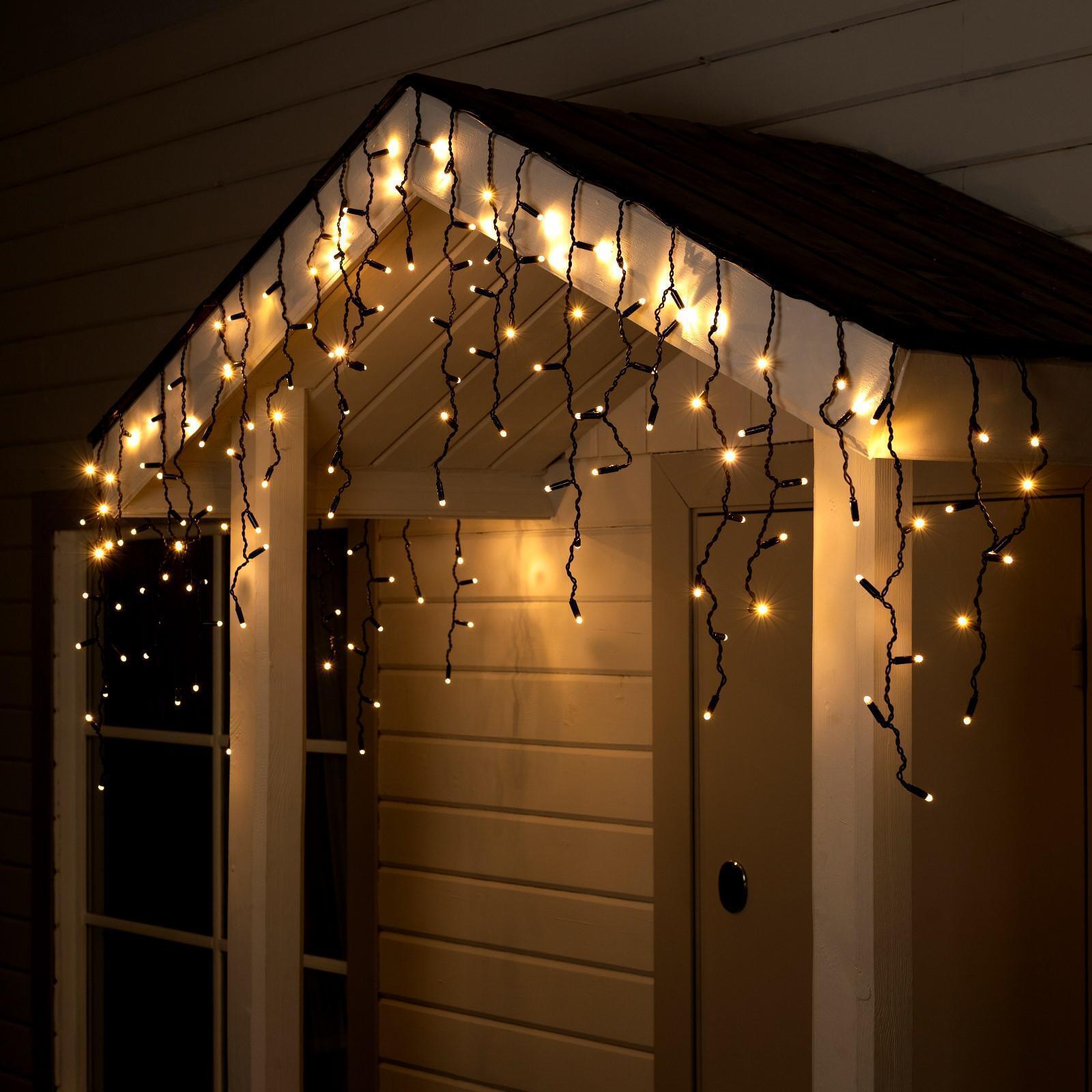 Гирлянда «Бахрома» 3 × 0.6 м, IP65, УМС, тёмная нить, 160 LED, свечение тёплое белое, 220 В