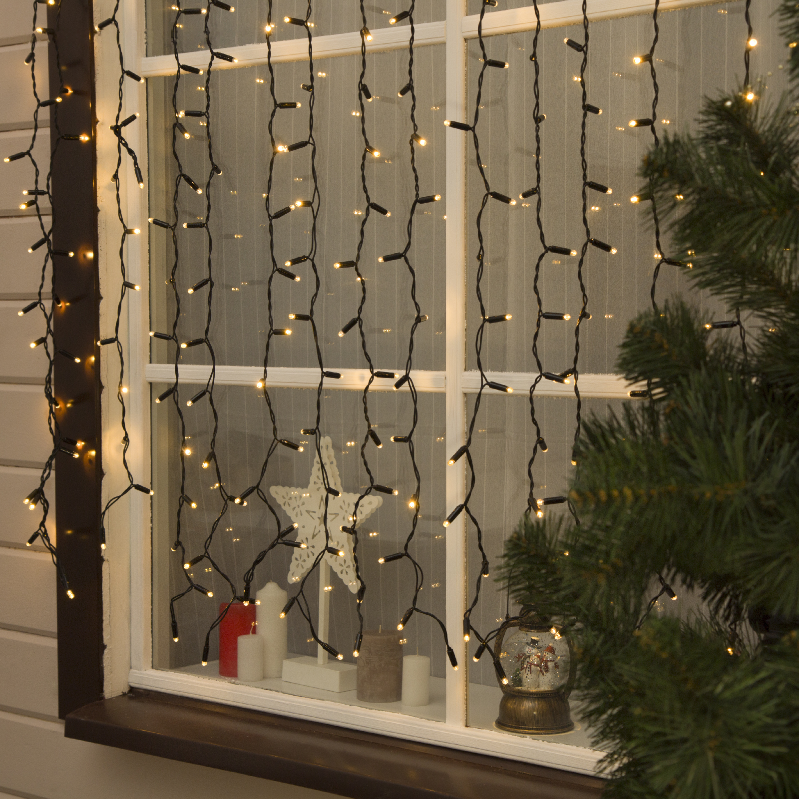 Гирлянда «Занавес» 2 × 1.5 м, IP65, УМС, тёмная нить, 360 LED, свечение тёплое белое, 220 В, УЦЕНКА