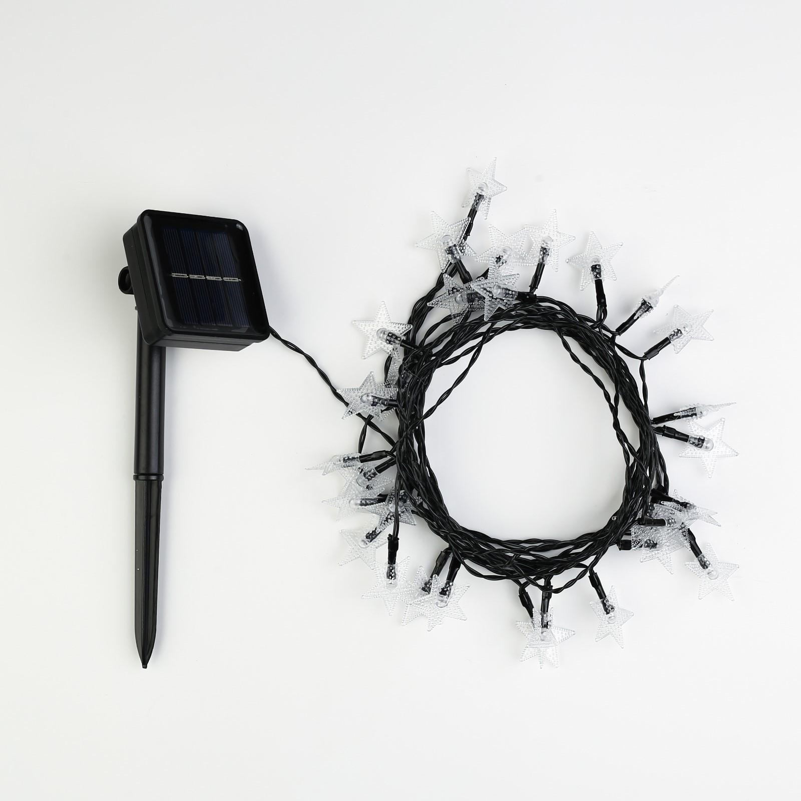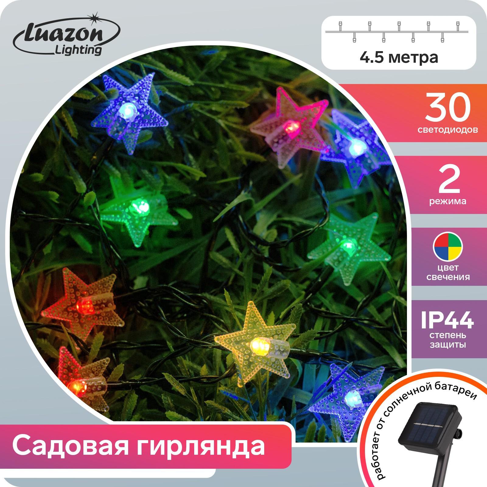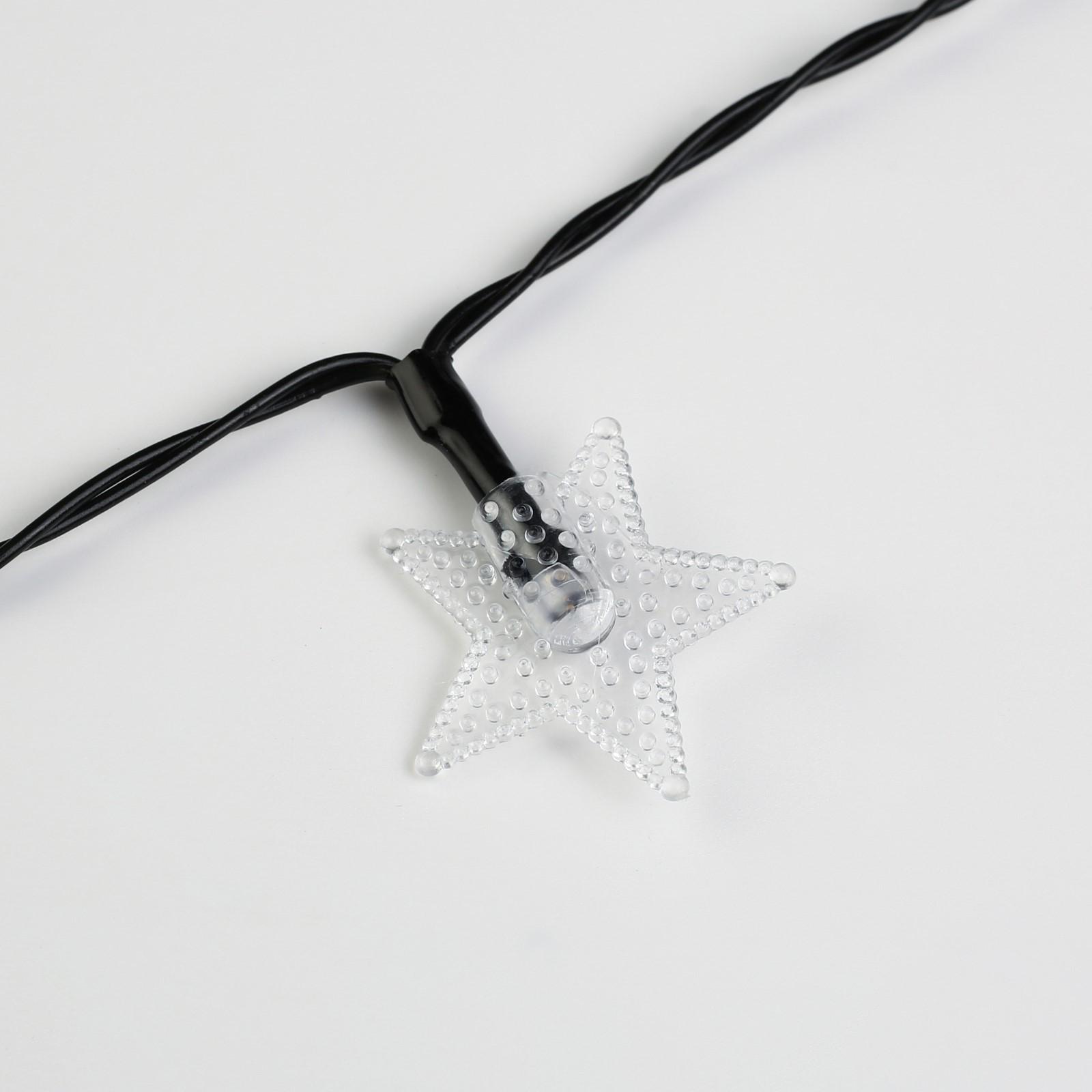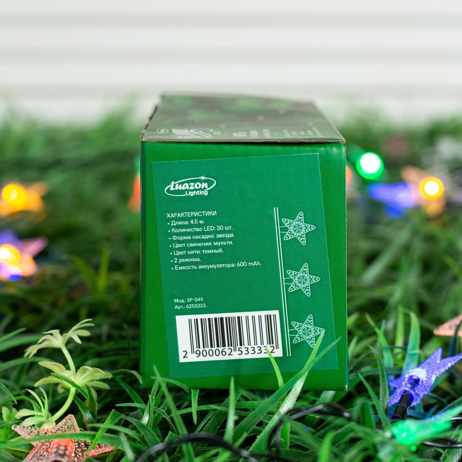 Гирлянда «Нить» 4.5 м с насадками «Звёзды», IP44, тёмная нить, 30 LED, свечение мульти, 2 режима, солнечная батарея