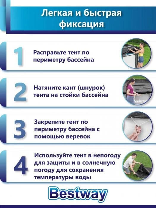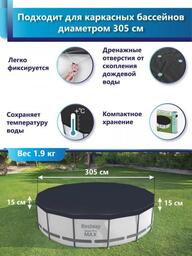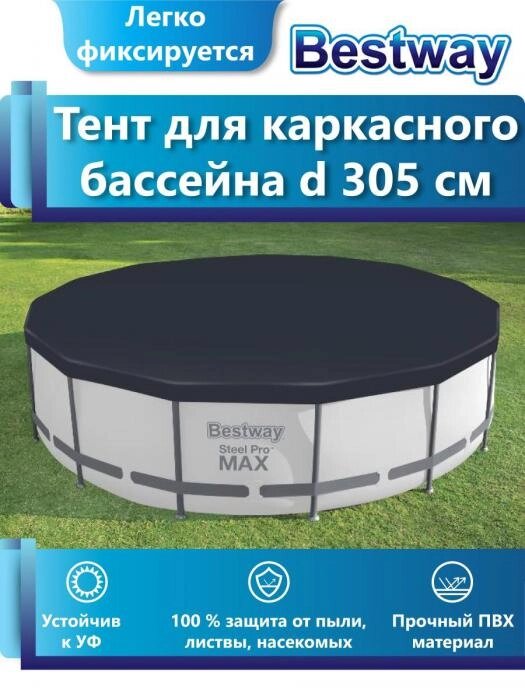 Тент для каркасного круглого бассейна Bestway 305 см защитный чехол крышка накидка покрывало Intex