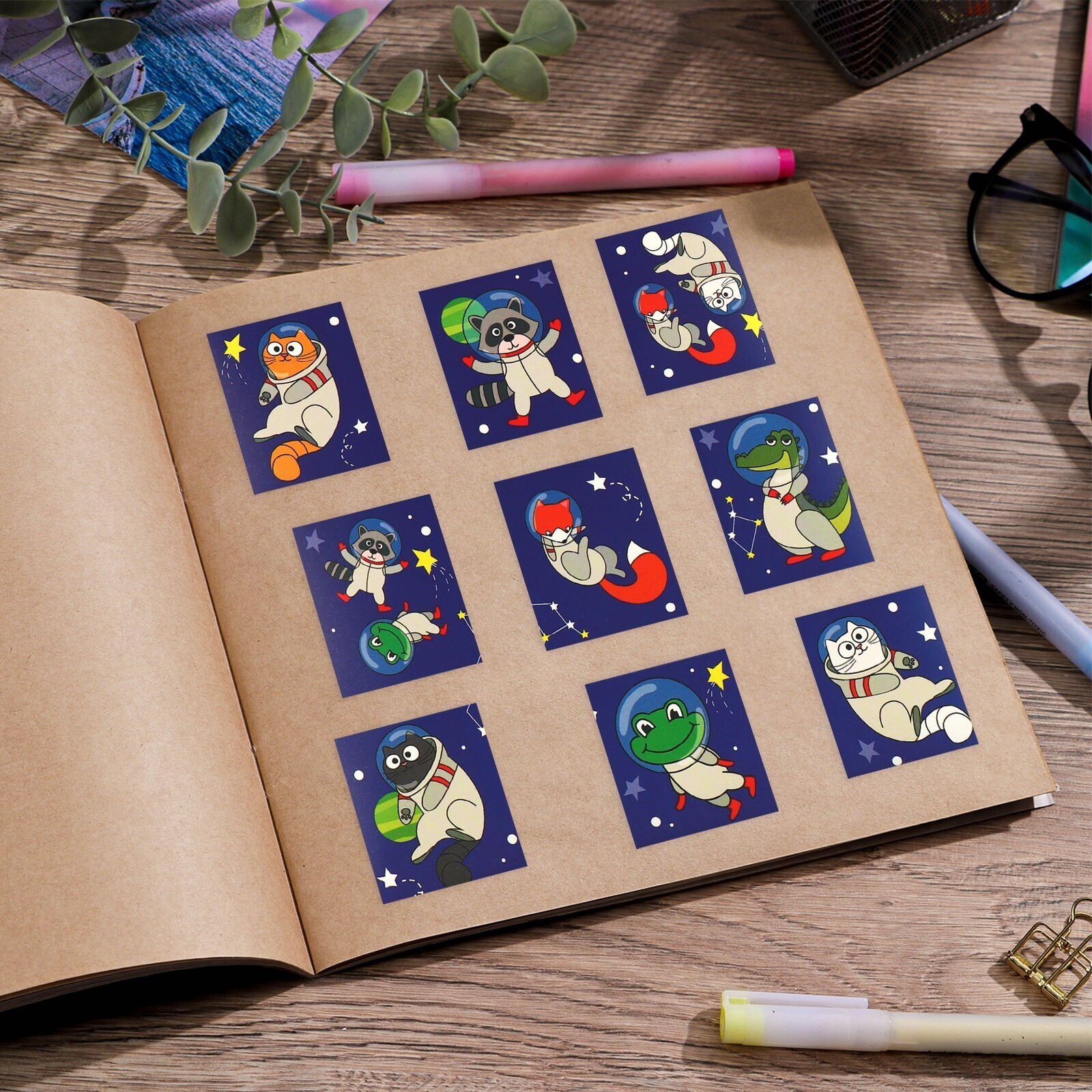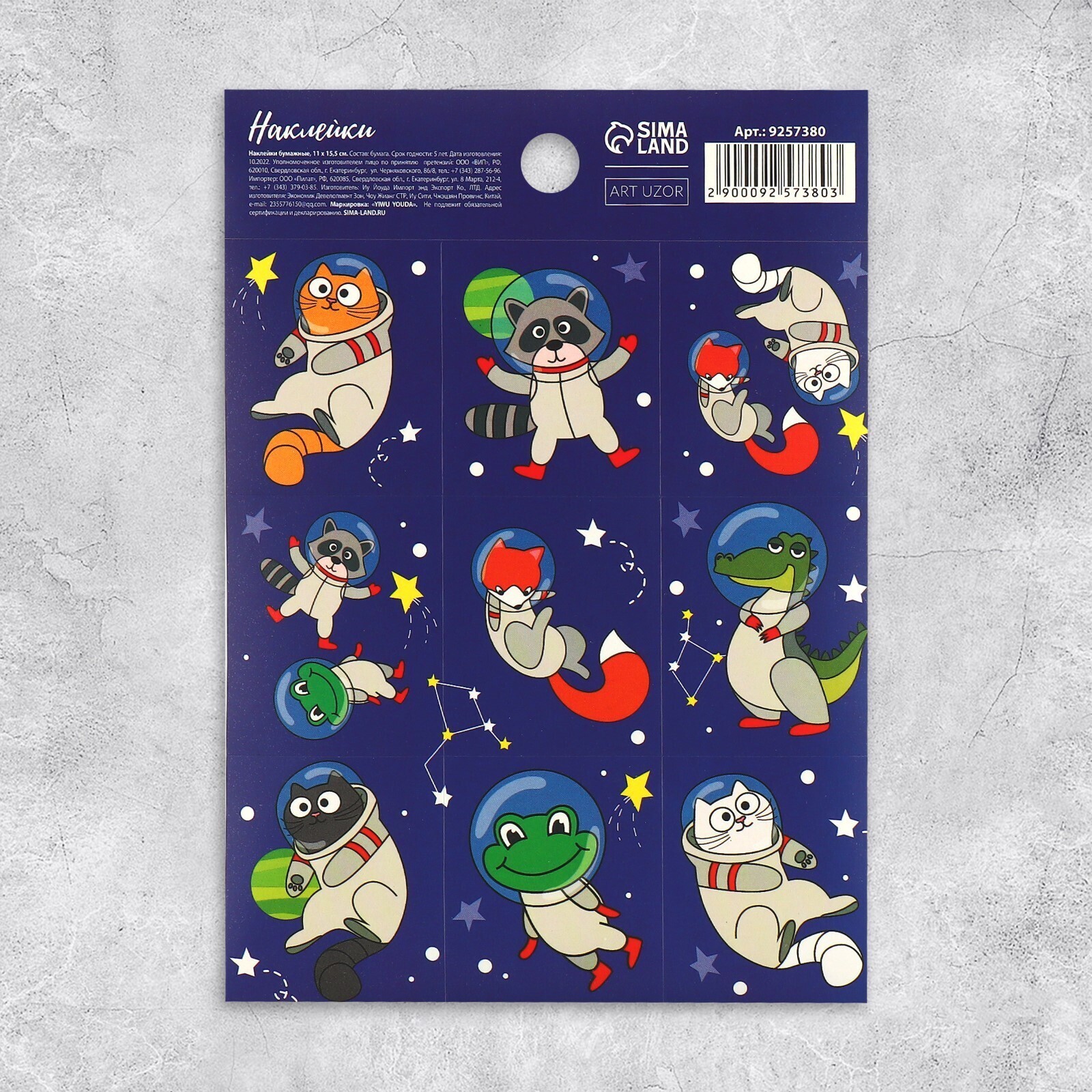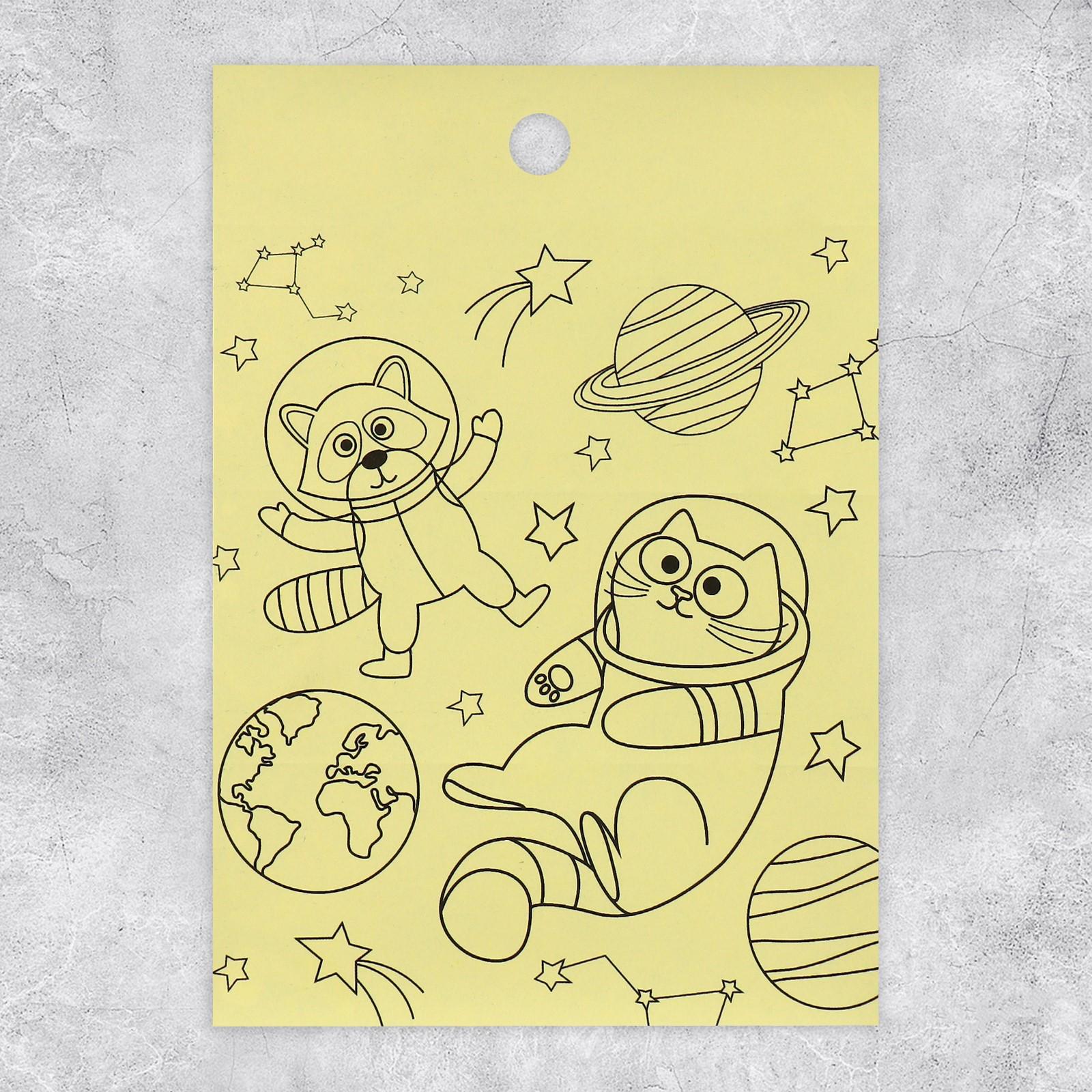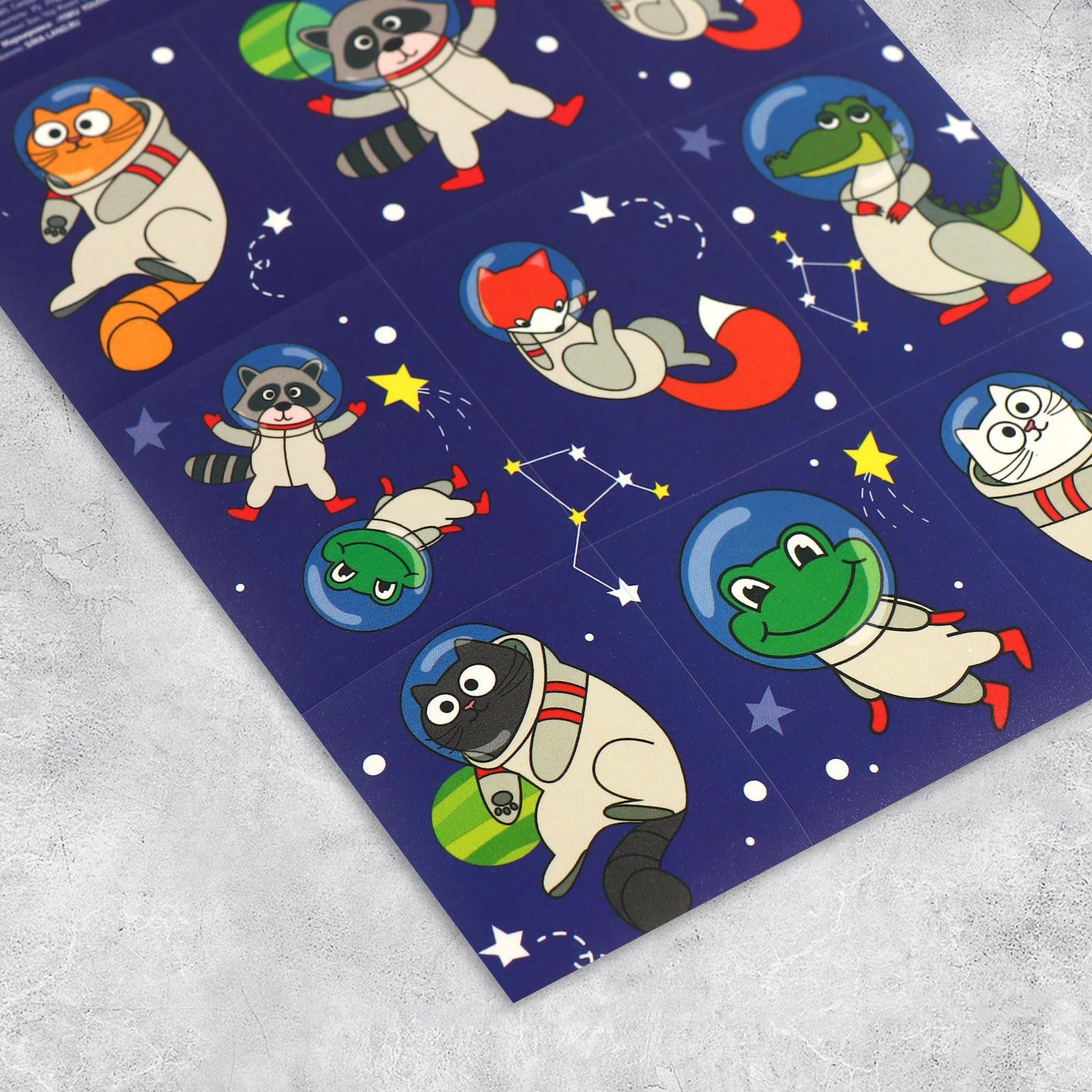 Наклейки бумажные «Космические животные», c раскраской на обороте, 11 × 15,5 см