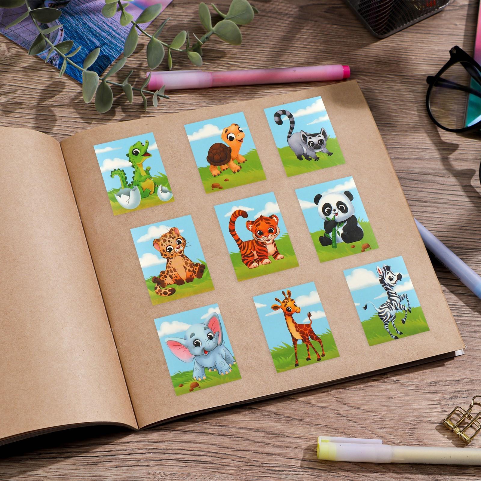 Наклейки бумажные «Животные», c раскраской на обороте, 11 × 15,5 см