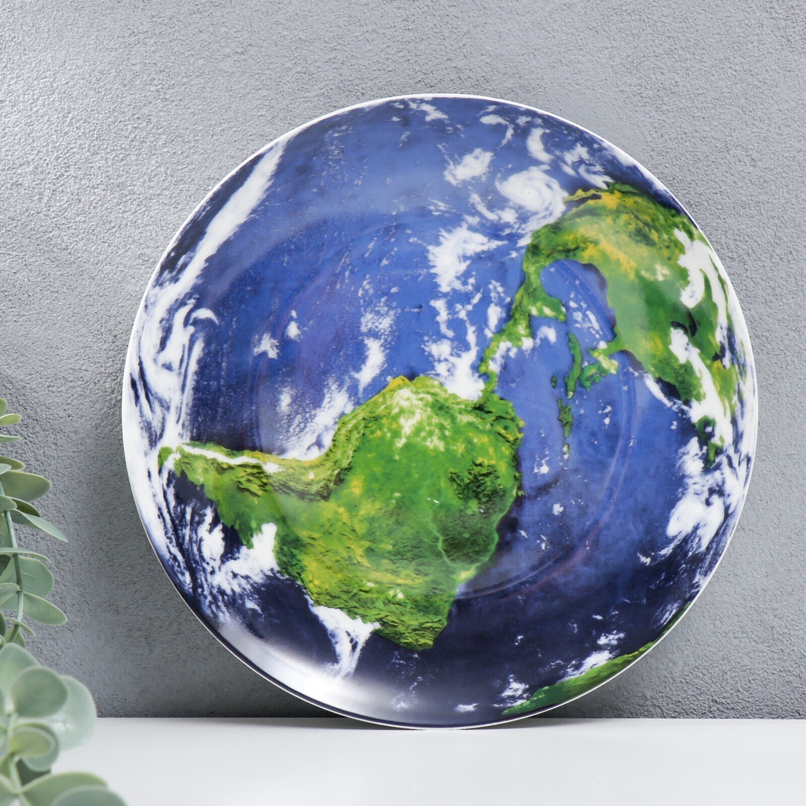 Тарелка декоративная керамика панно "Солнечная система. Земля" d=20,5 см