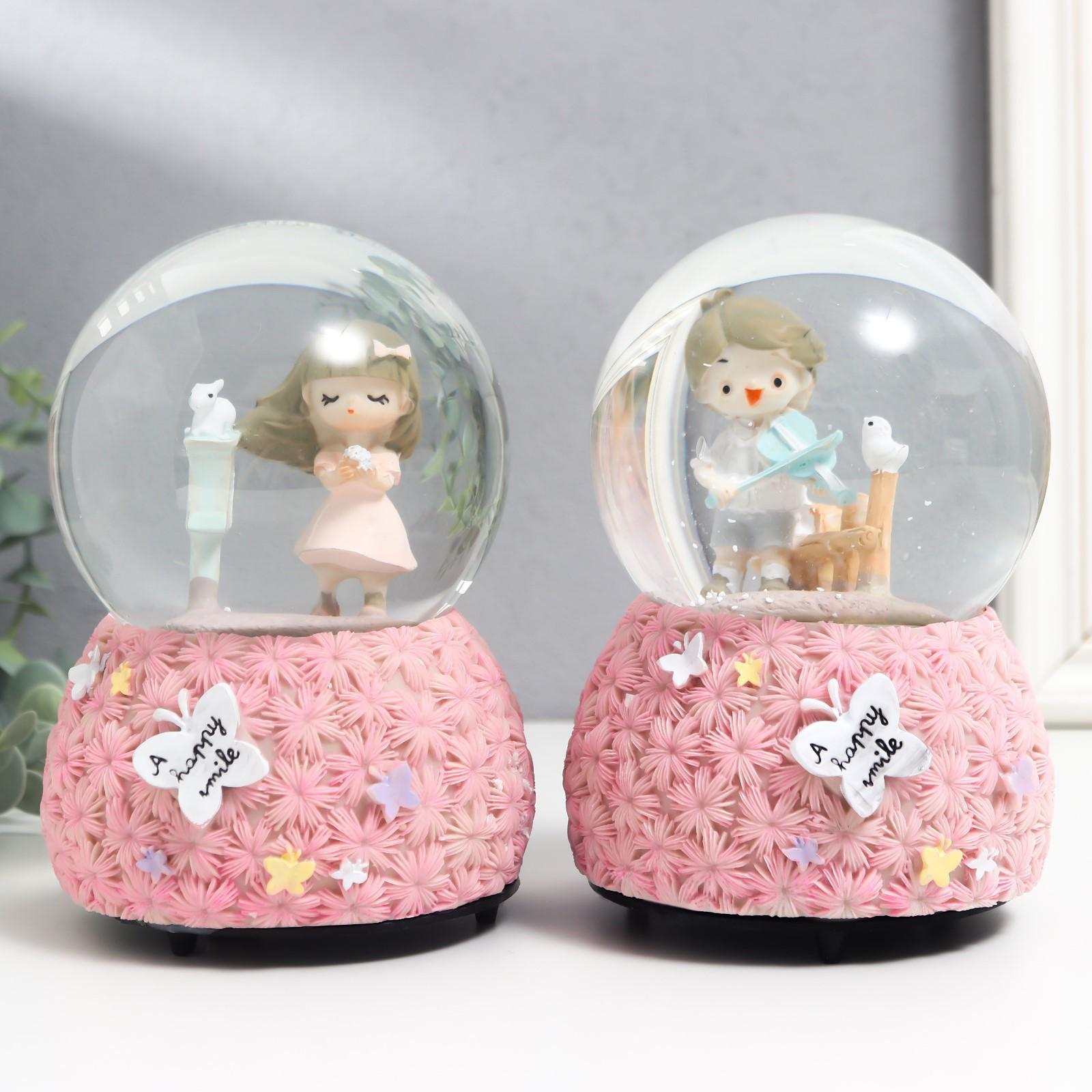 Стеклянный шар музыка, крутится "Мальчик скрипач/Девочка" МИКС 10х10х15 см