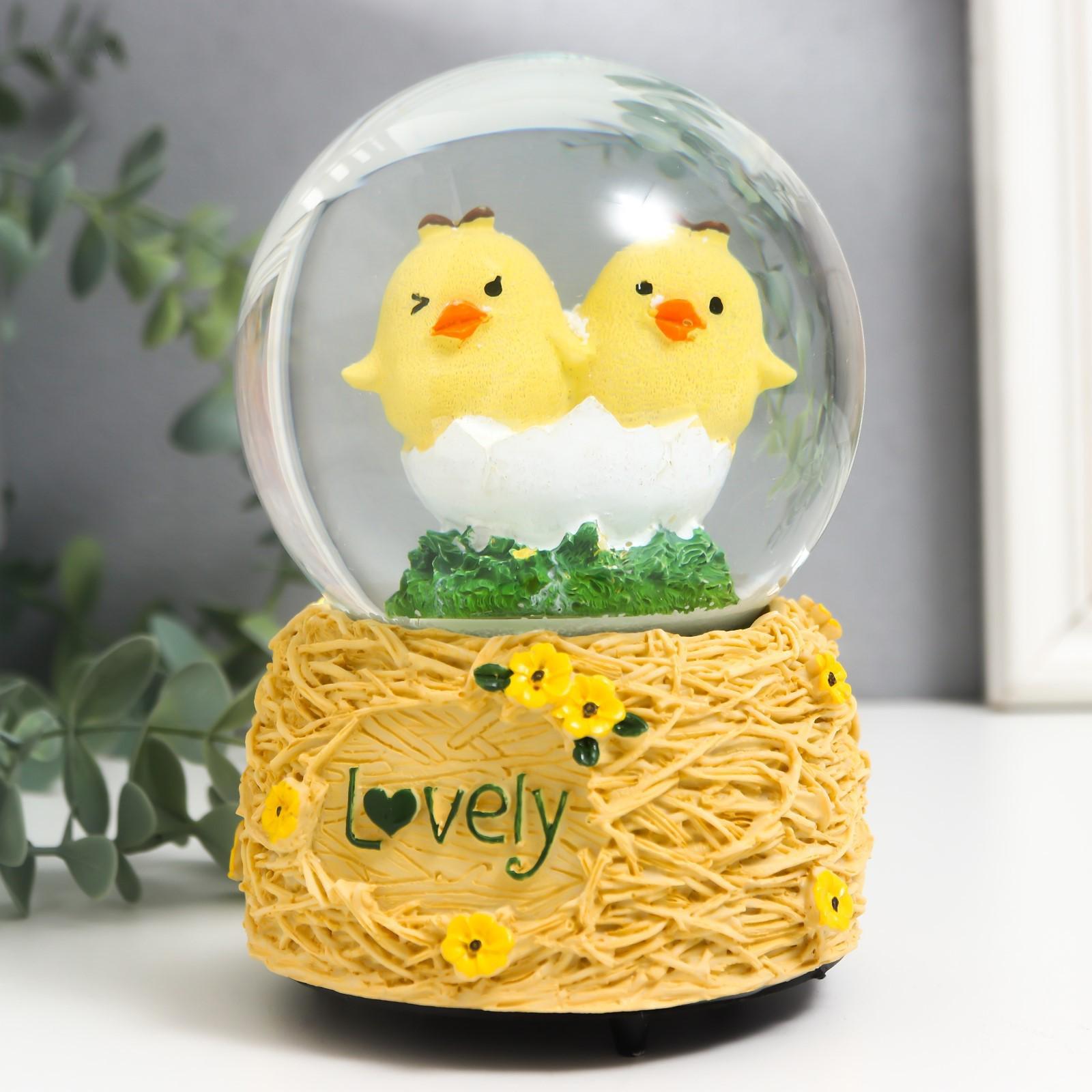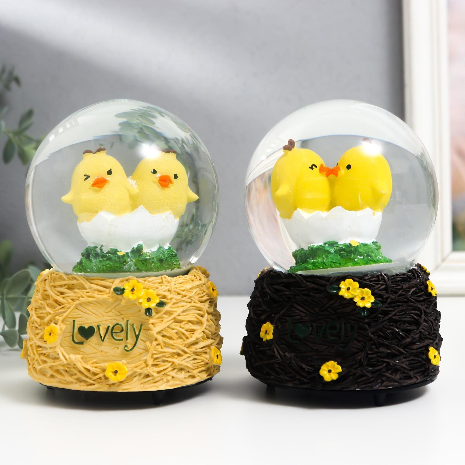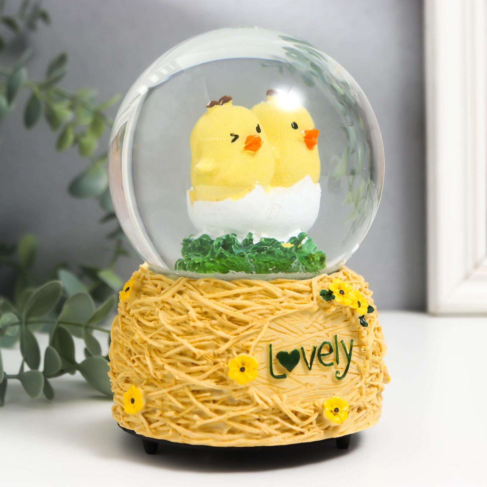 Стеклянный шар музыка, крутится "Вылупившиеся цыплята" МИКС 10х10х15 см
