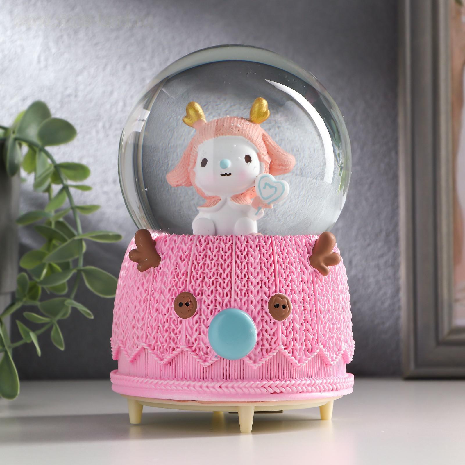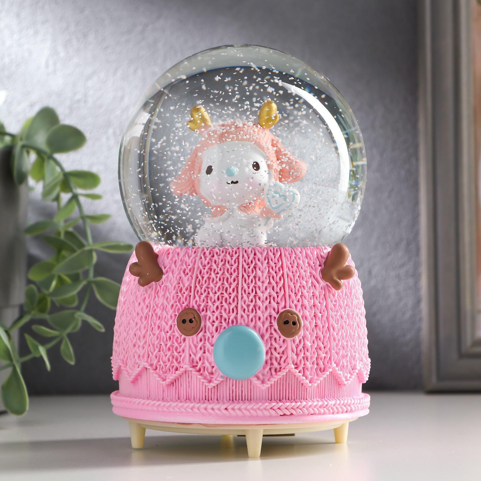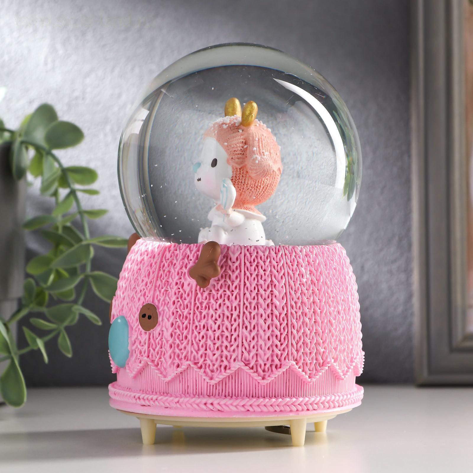 Стеклянный шар музыка "Мишка в шапке с рожками" крутится МИКС 15х10х10 см