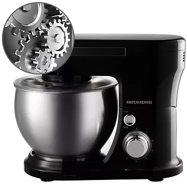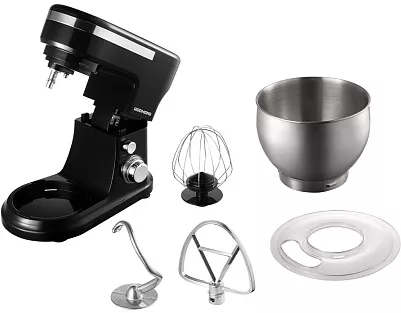 Стационарный миксер, мощность 1100 Вт, количество скоростей 6, режим смешивания импульсный, объём чаши 5 л, материал чаши нерж. сталь, насадки: венчики для взбивания, для теста.