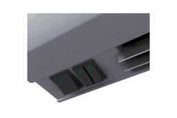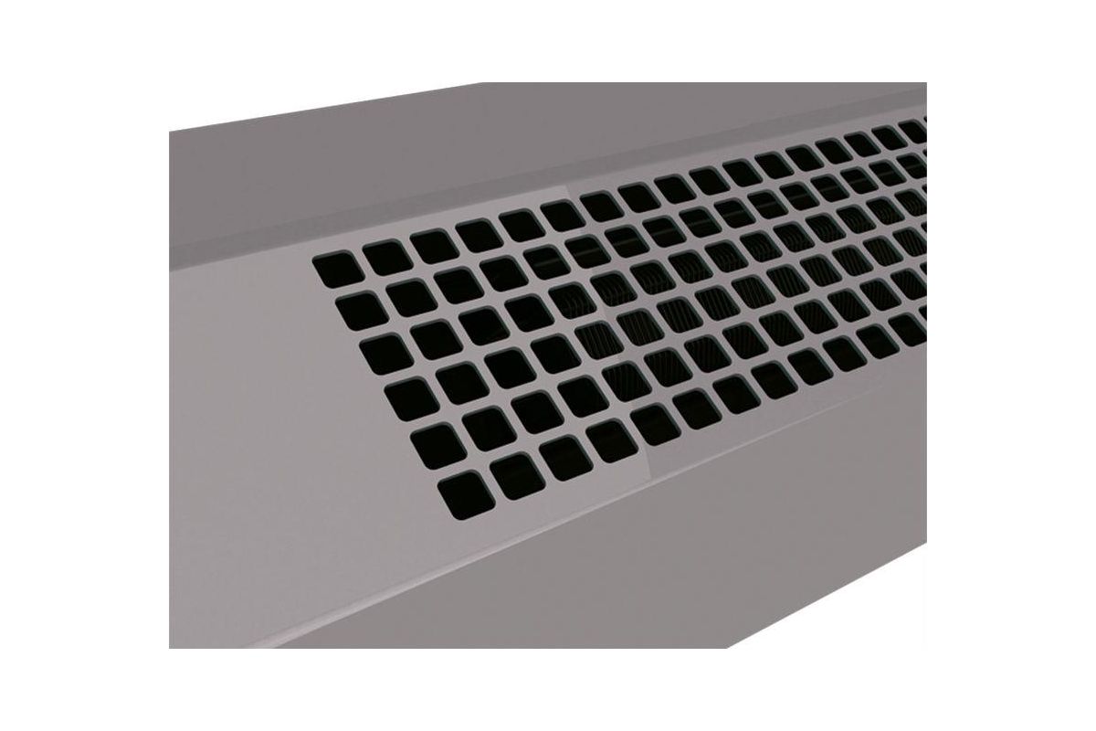 - Вентиляторы забирают воздух через переднюю перфорированную решетку корпуса, поток воздуха, проходя через нагревательные элементы, нагревается, попадает в вентиляционный узел, и выбрасывается через воздуховыпускное сопло в виде направленной струи.
