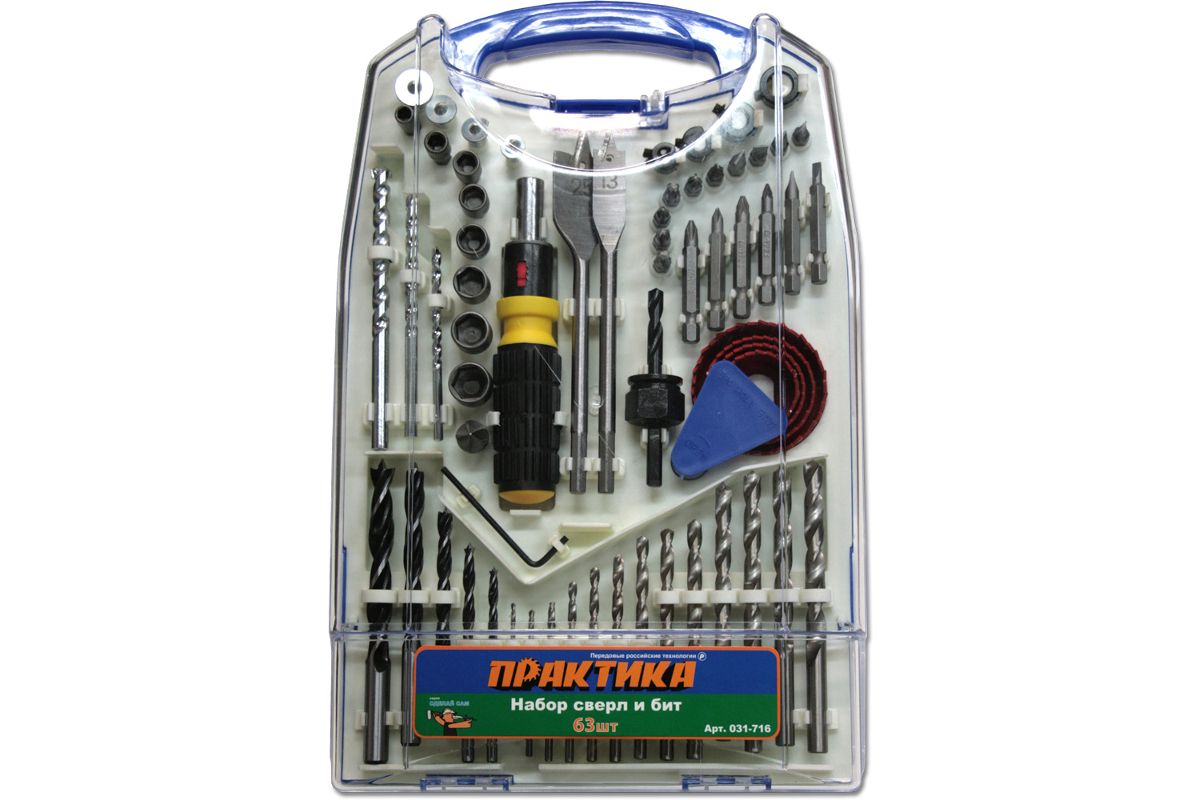 Набор насадок для дрели ПРАКТИКА 031-716 (63 предмета)