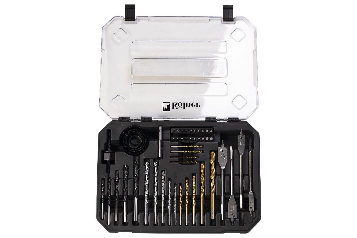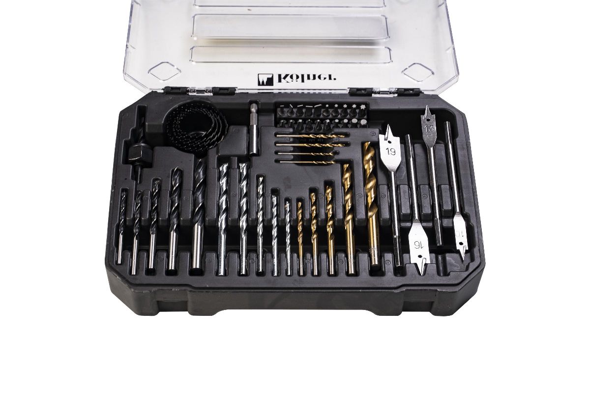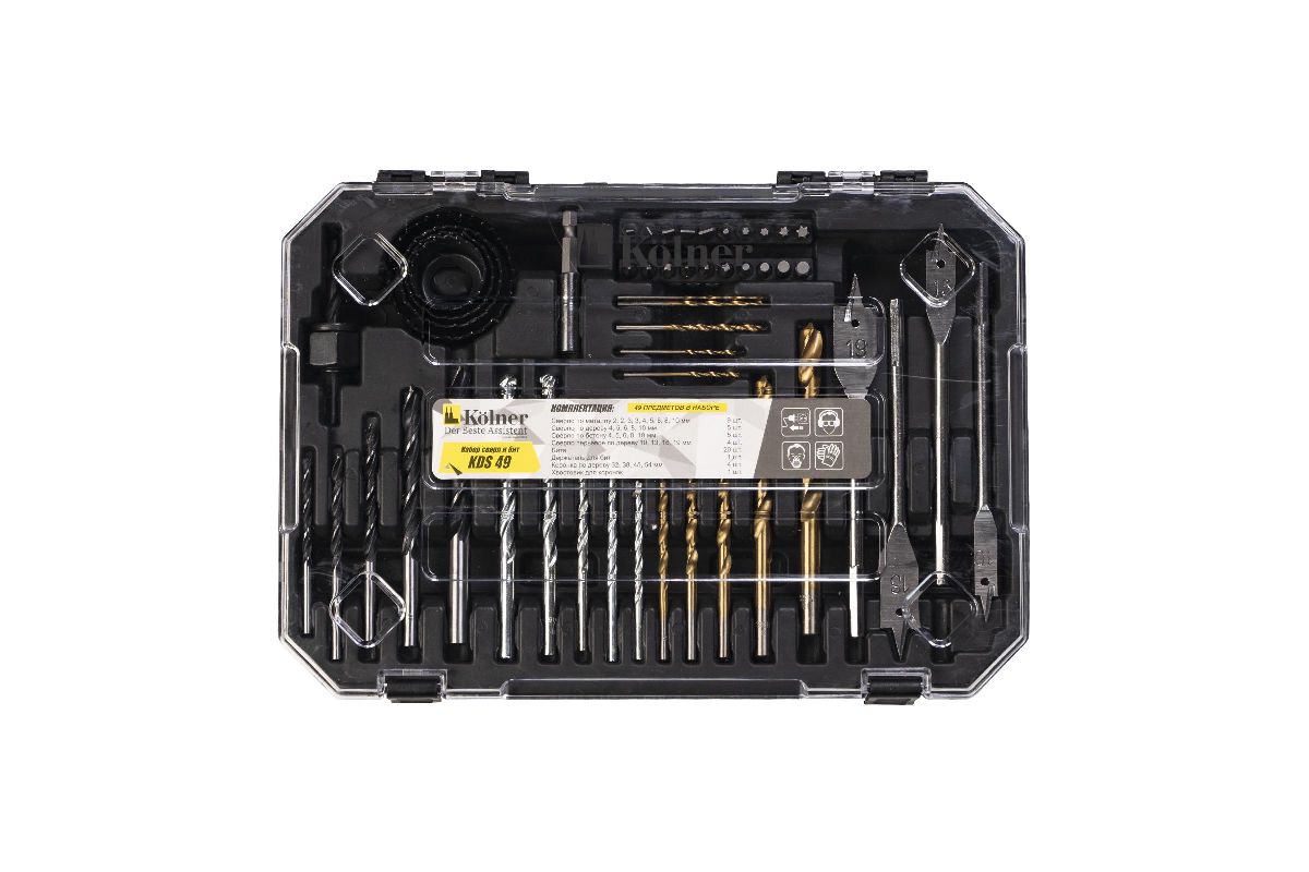 Набор сверл и бит Kolner KDS 49 в пластиковом кейсе 49шт, адаптер коронч.сверла, держатель бит