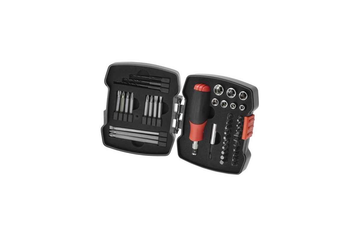 Набор из 43 принадлежностей: ручная отвертка, магнитный держатель, переходник, набор бит.