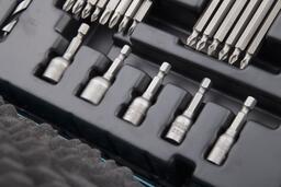 Набор бит и сверл применяется совместно с дрелями и шуруповертами для монтажа/демонтажа крепежных элементов и сверления отверстий в металлических изделиях. Комплект поставляется в удобном для хранения и транспортировки боксе.