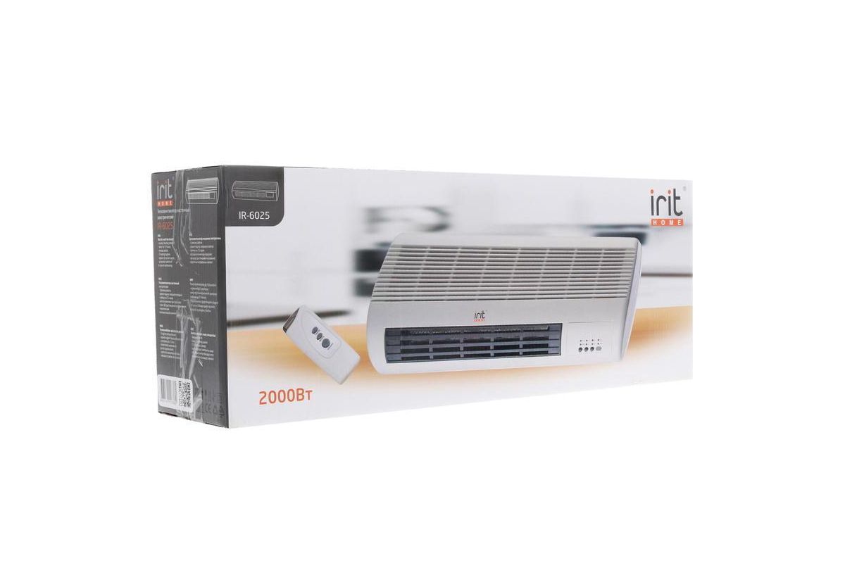 Тепловентилятор настенный электрический, 1000/2000Вт, керамический нагревательный элемент, 3 режима нагрева, режим подачи холодного воздуха, автоключение при понижении температуры, световой индикатор работы, таймер на 7,5 часов, автоотключение при перегреве, пульт ДУ. Габаритные размеры: 450*110*185 мм