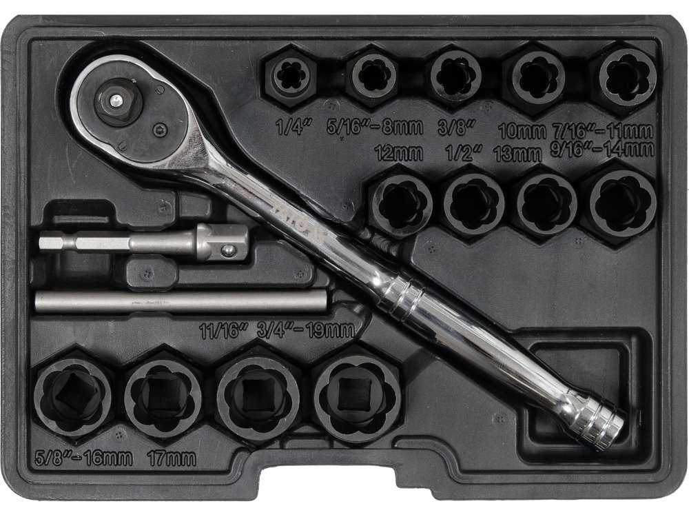YATO YT-05897 Головки для скрученных гаек 1/4"-19мм. 3/8" + трещотка (набор 16пр.) HRC 47-50 "Yato"
