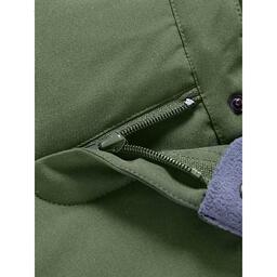 Зимняя куртка имеет три кармана: боковые накладные карманы и внутренний сетчатый кармашек, капюшон съёмный на кнопках, ветрозащитная планка на липучках и кнопках. Снегозащитная юбка, защитит поясницу от переохлаждения и будет препятствовать попаданию снега внутрь. Манжеты рукавов на резинке, для надежной фиксации и защиты от попадания снега.
