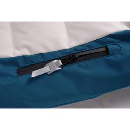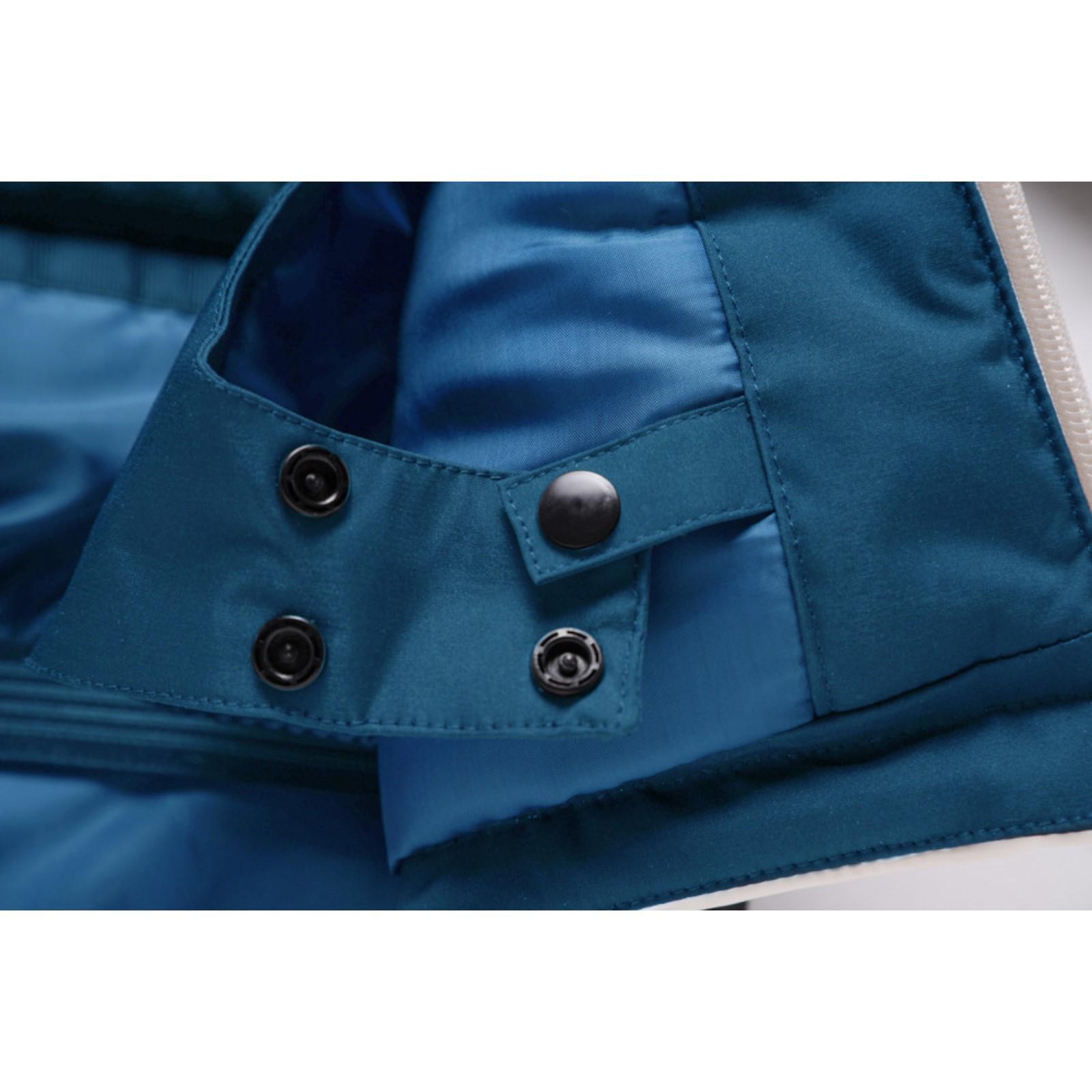 Куртка также имеет боковые карманы на молнии с ветрозащитной планкой и снегозащитную юбку на кнопках.