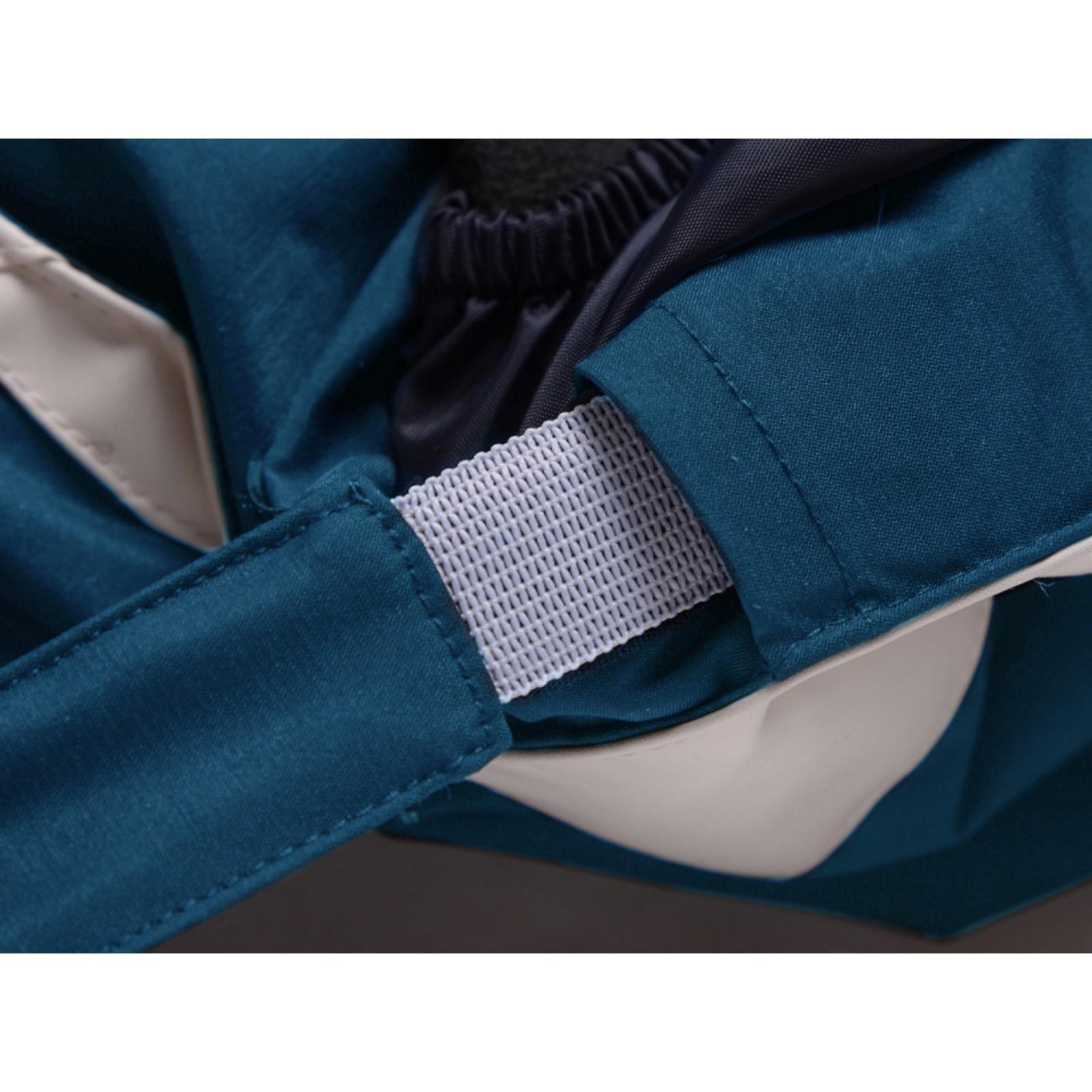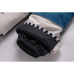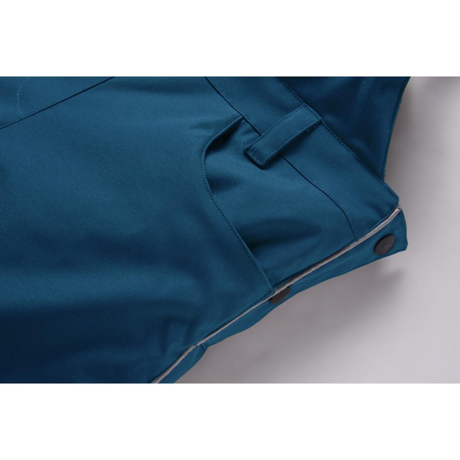 Брюки оснащены эластичными манжетами на резинке, штрипкой для надежной фиксации брюк, прорезными карманами на молнии, резинкой стяжкой по бокам, застёжкой на молнии и ветрозащитной планкой на липучке.