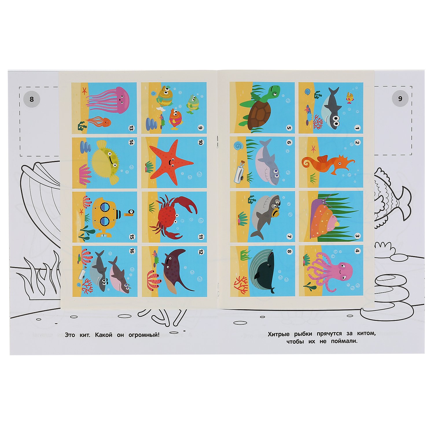 Раскраска УМка Акуленок Котенок Котэ Наклей и раскрась 299647