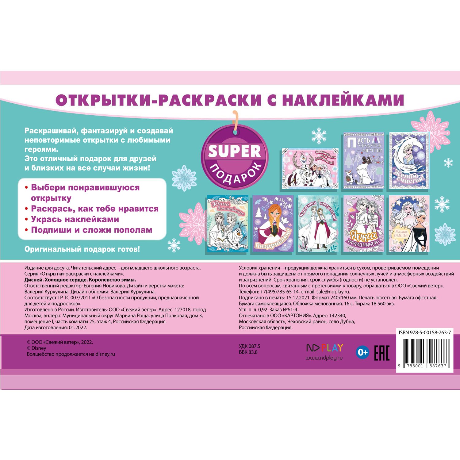 Книга ND PLAY Открытки-раскраски с наклейками Холодное сердце Королевство зимы 978-5-00158-763-7
