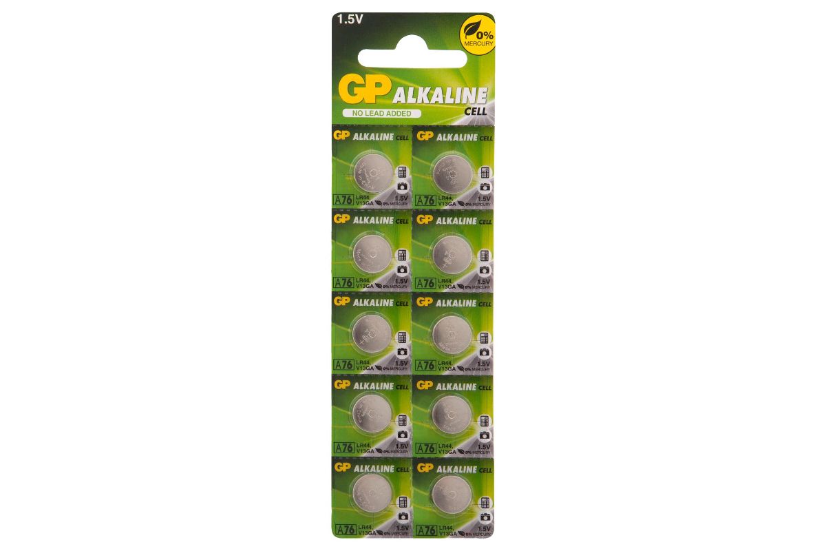 Алкалиновые пуговичные батарейки GP A76 (A76FRA-2C10250/5000) 10шт на отрывном блистере