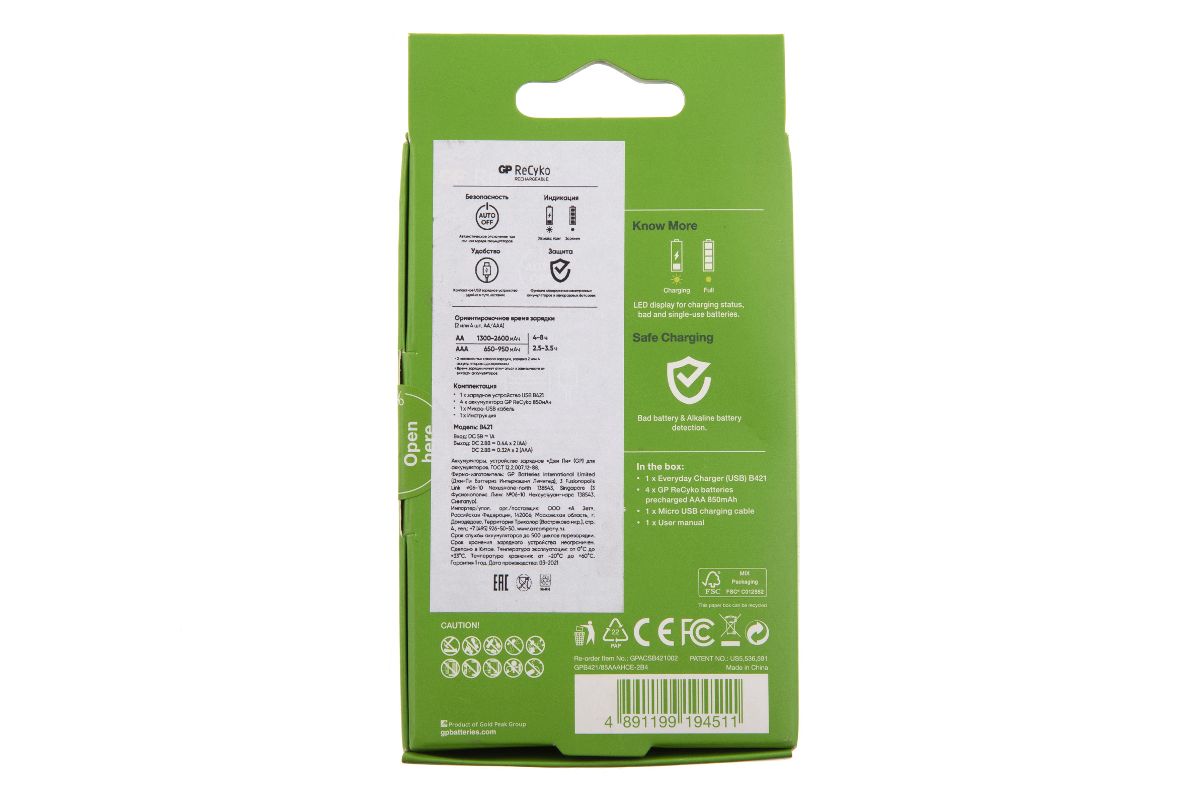Набор из USB з/у + 4 шт. АКБ 850 мАч (ААА) GPB421/85AAAHCE-2B4