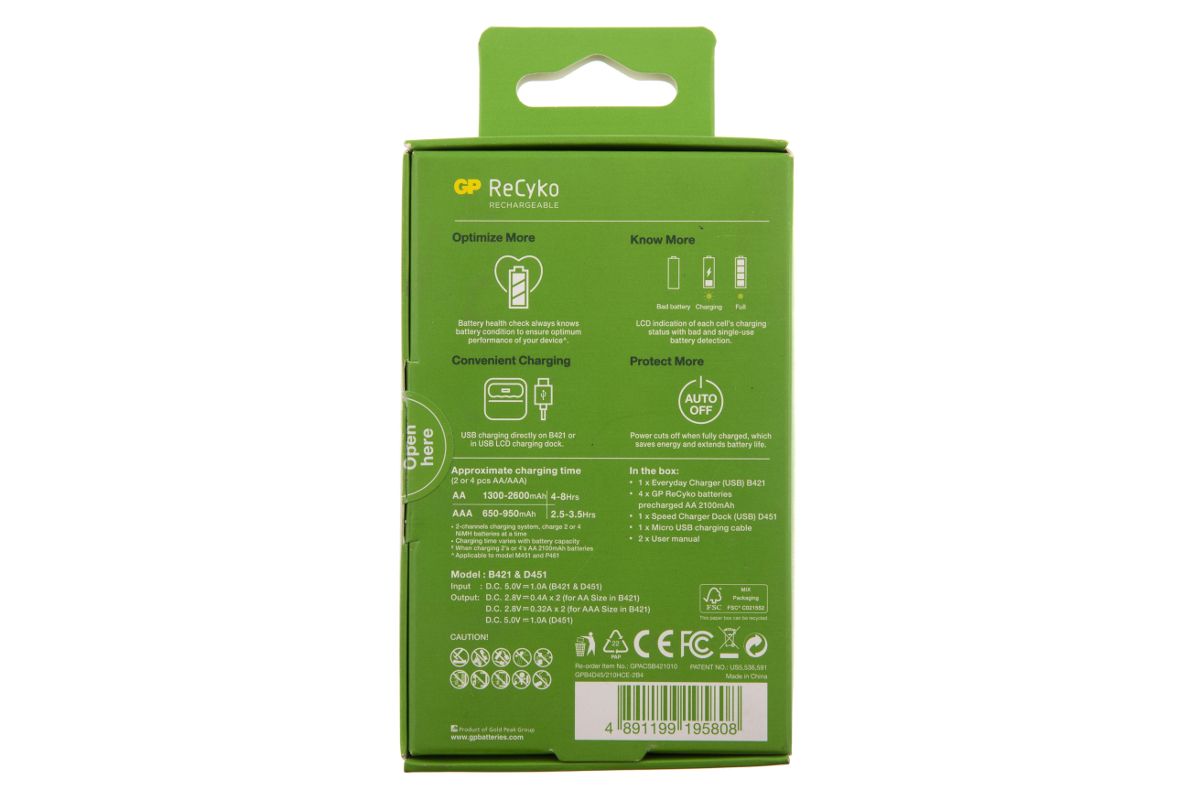 Набор из USB з/у + 4 шт. АКБ 2100 мАч (АА) + док станция GPB4D45/210HCE-2B4