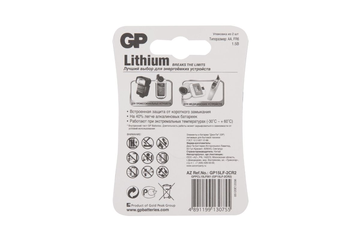 Батарейки GP Lithium AA 15LF-2CR2 (цена за блистер 2шт.)